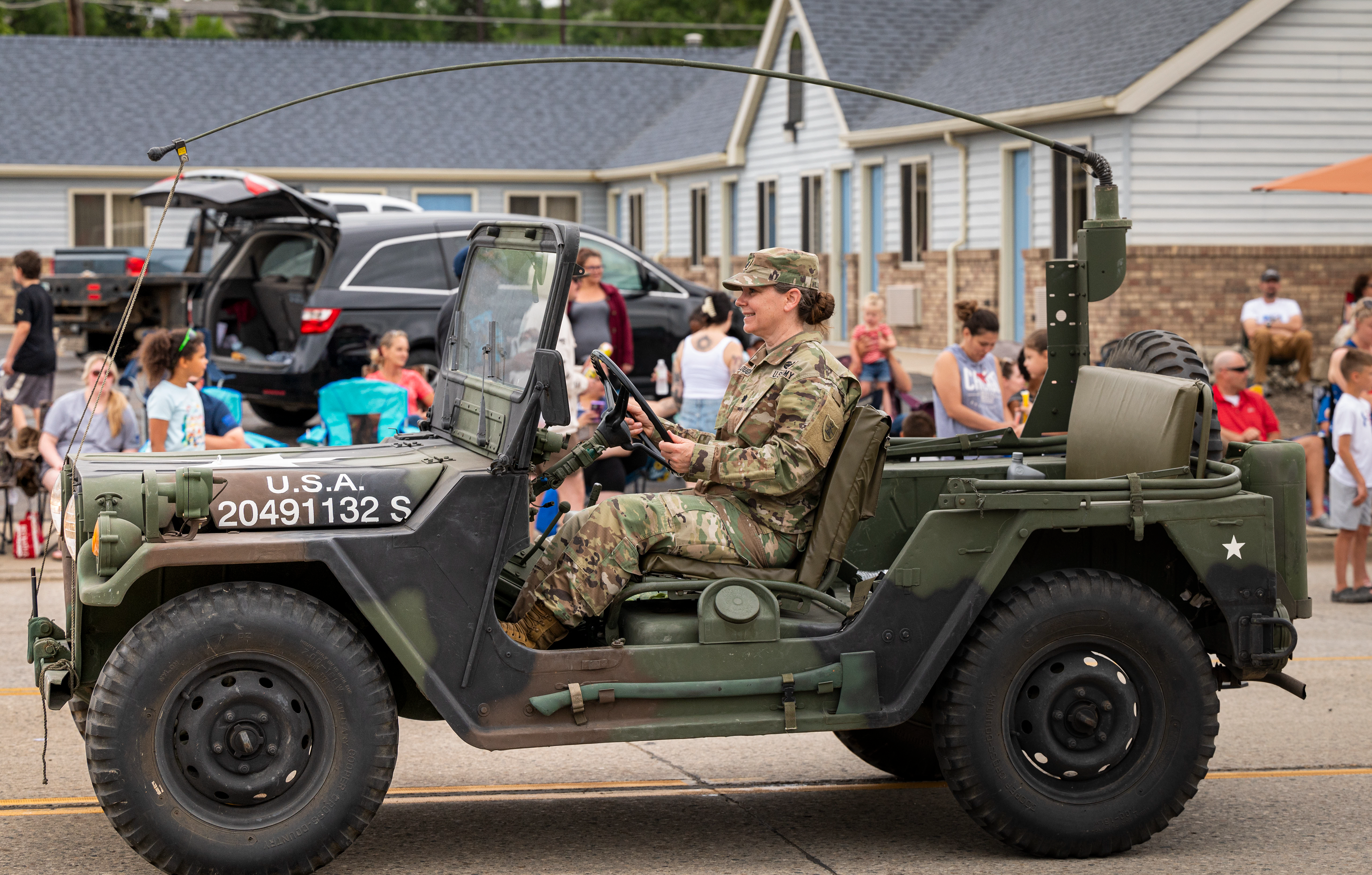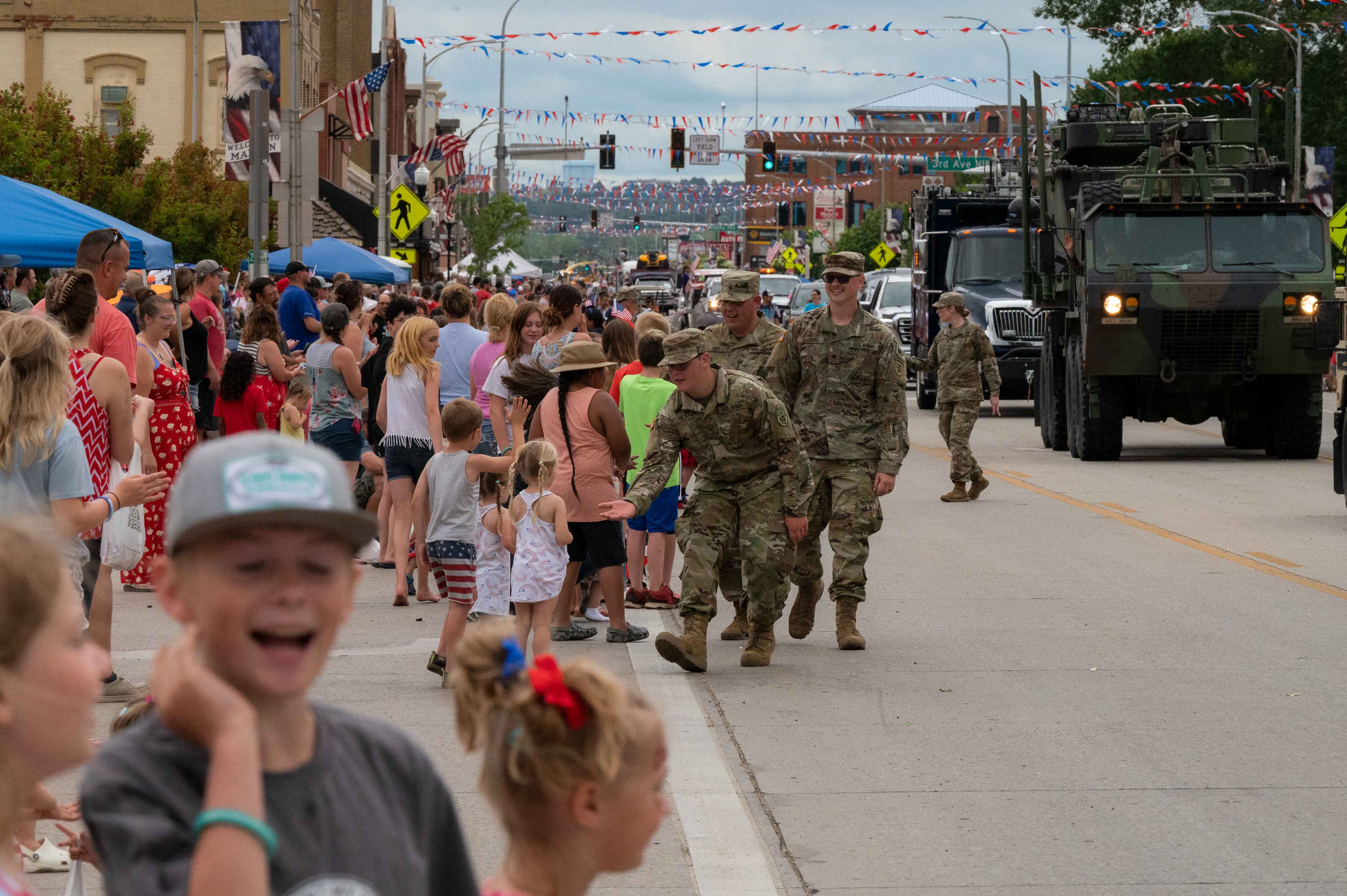About twenty members of the N.D. National Guard participated in Mandan's annual Independence Day parade, Mandan, N.D., July 4, 2022. This parade has been an annual tradition since 1881. (National Guard story and photos by Sgt. 1st Class Charles Highland, N.D. National Guard Public Affairs Office)