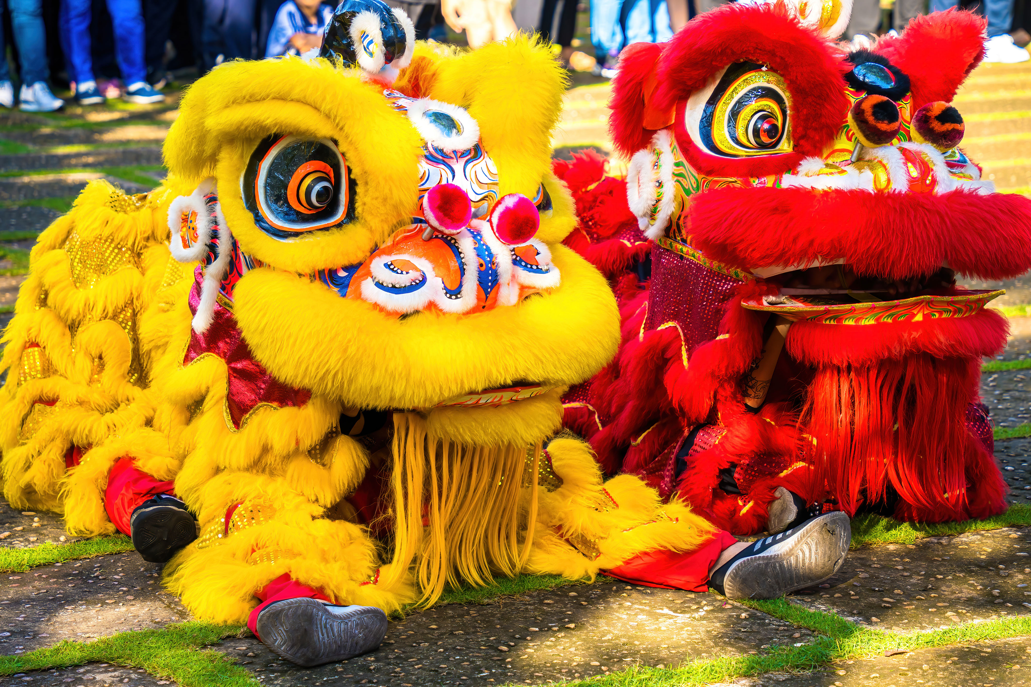 Created with images by Dong Nhat Huy - "A head of Chinese Lion dance in the Chinese new year festival.,Lion and dragon dance during Chinese New Year celebration.,Group of people perform a traditional lion dance." • Mara Zemgaliete - "fresh tasty burger" • Quality Stock Arts - "no mobile phone or phone call warning prohibit sign"