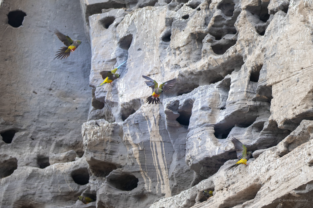 Bij Viedma, langs de Rio Negro, wordt de omgeving interessanter. Bij El Cóndor leeft ,volgens zeggen, de grootste papegaaien kolonie; Loros barranqueros. Ze leven in de rotsen langs de kust en maken een hoop kabaal. Erg mooi om te zien.