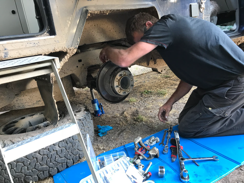 Aan een mooie dag komt abrupt een eind. Bij het parkeren op een fantastische wildkampeerplek slaat de pech toe. De wielen blokkeren en blijkt dat de hele reminrichting totaal in de vernieling te ligt. Na wat kunst en vliegwerk kunnen we naar een stad rijden. Weliswaar zonder remmen maar we bereiken een grote Toyota dealer 300 kilometer verderop. Na 3 dagen wachten is het benodigde materiaal uit Buenos Aires ingevlogen en worden alle 4 de remmen vernieuwd.