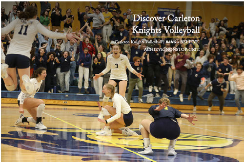 Your Why: At Carleton Volleyball, we want to know your why. Why do you play this game? What keeps you coming back to the gym? Weâre looking for athletes who truly love volleyballâwho are competitive, driven, and excited by the challenge of building something special. If youâre someone who wants to grow, push yourself, and help shape the future of a program alongside great teammates, weâd love to learn more about what motivates you and what fuels your passion for the game.