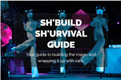 - Meals and beverages are provided during Sh'Build but not during the festival so please plan ahead and bring food for yourself.