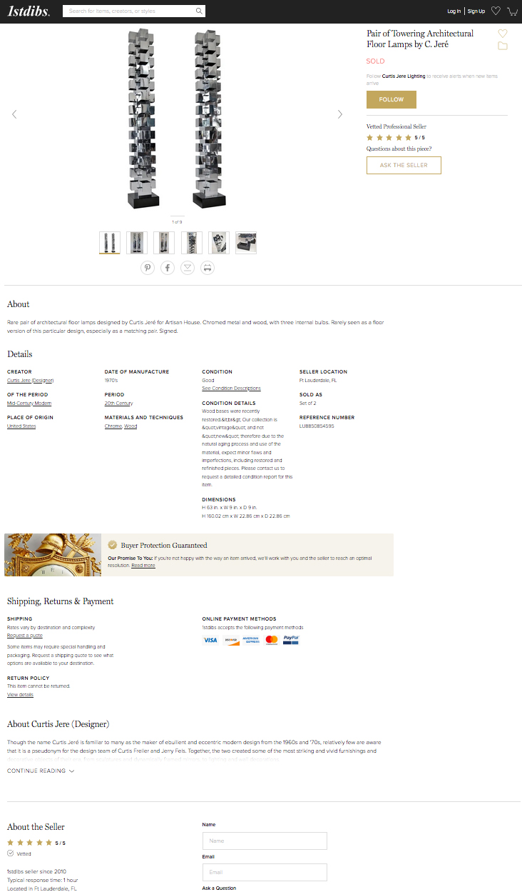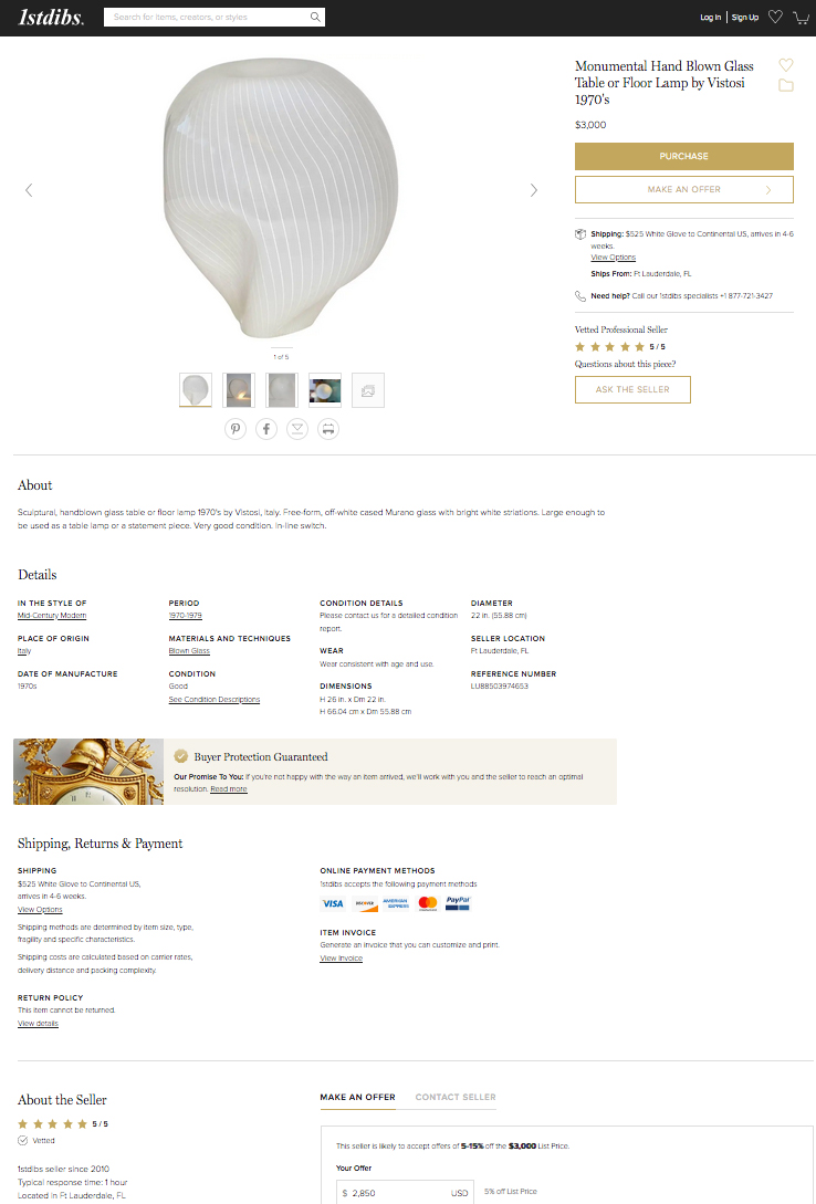 Because of high demand for our 1stdibs.com consignment services, Space Modern is launching FABULIST -- a full-service solution for buyers and sellers encompassing the entire on-location consignment process, from careful curation, professional handling and photography, to communication and negotiations, processing payments, and finally shipping or delivery services. We offer selective pieces, from exclusive private collections, vintage retail galleries, and interior designer's overstock.