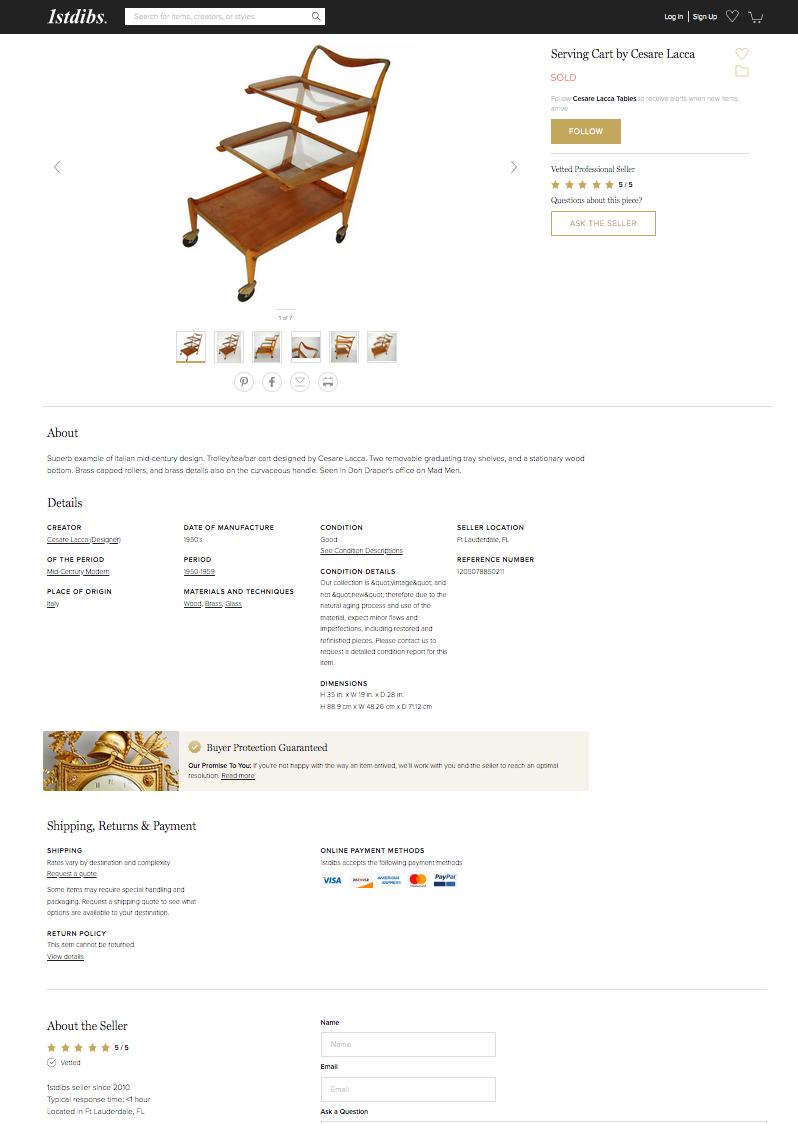 - We List your items within 7 days - this is the time to process (Photoshop) the photo's and write detailed descriptions, fully customized for various online marketplace platforms (i.e., 1stdibs.com. spacemodern.com, incollect.com + our social media channels, and direct email list)