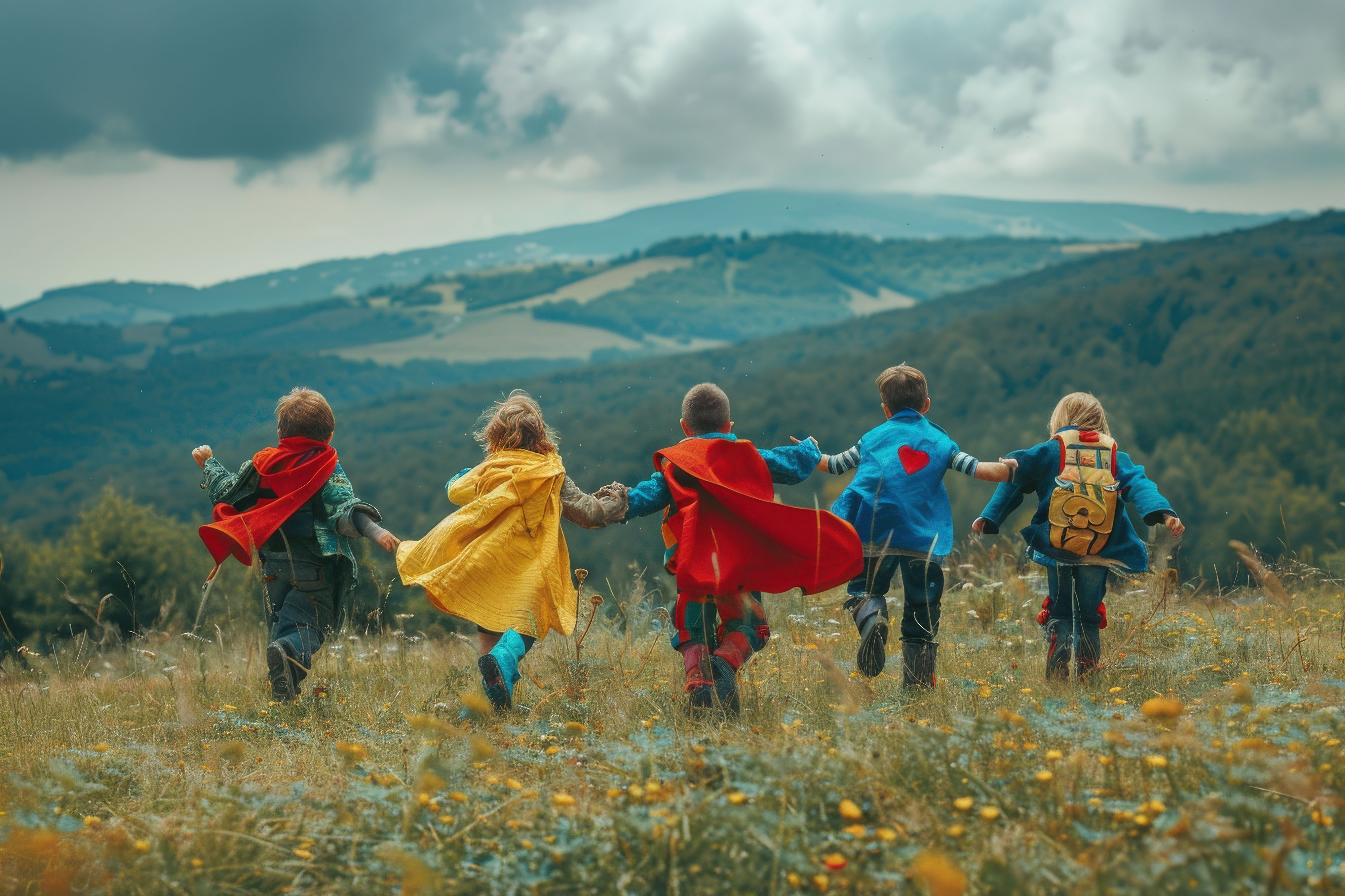 Gemaakt met een afbeelding van Chotijah - "Five Children Running in a Field with Capes"