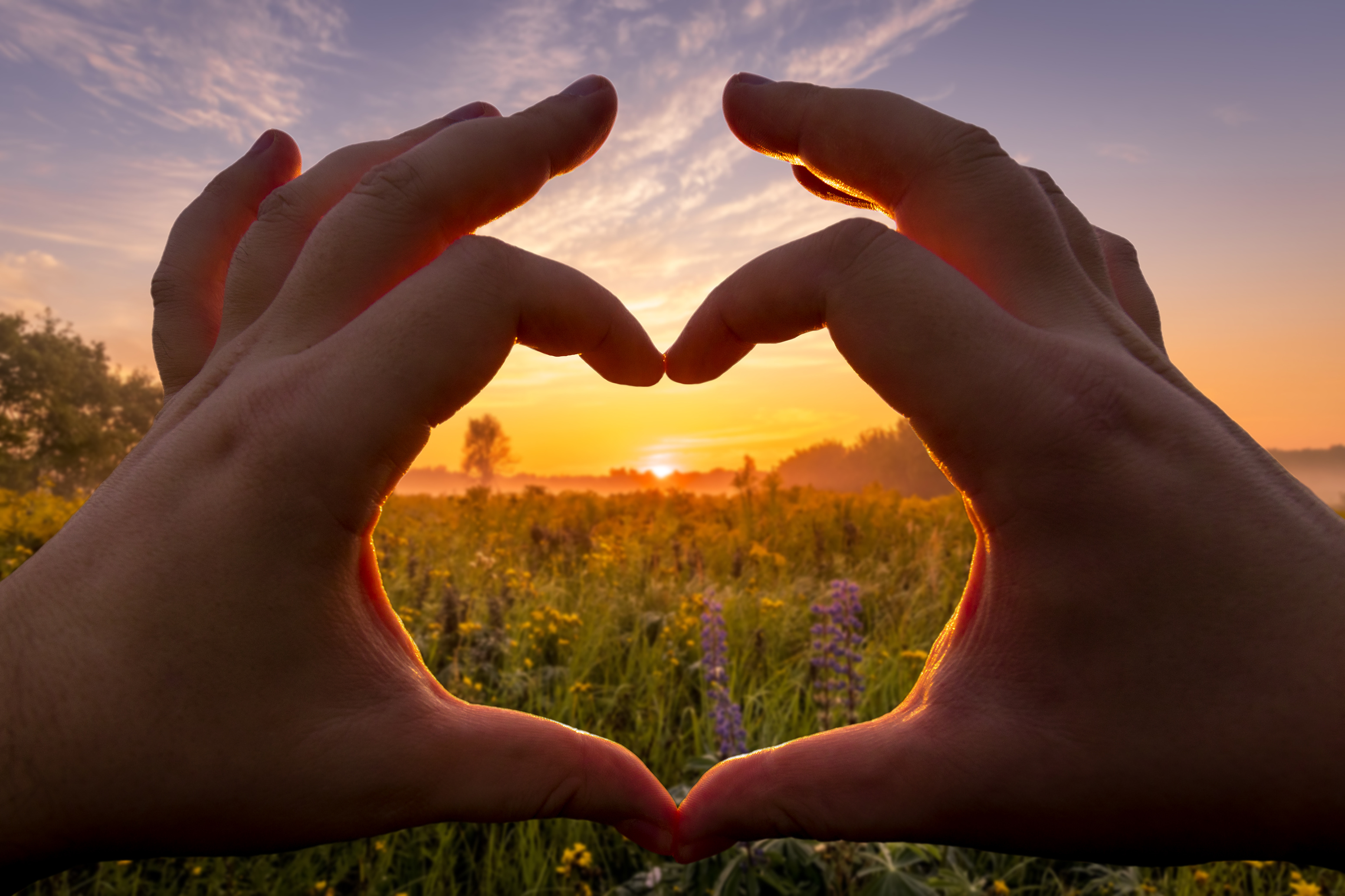 Created with images by Jeerawat - "Fruit Cake Delight" • Eugene_Photo - "Hands in the shape of heart against the sunset or sunrise over the field with young flowers and grass in the summer with a cloudy sky background. Landscape." • olezzo - "Beautiful bright sunset on a tropical paradise beach"