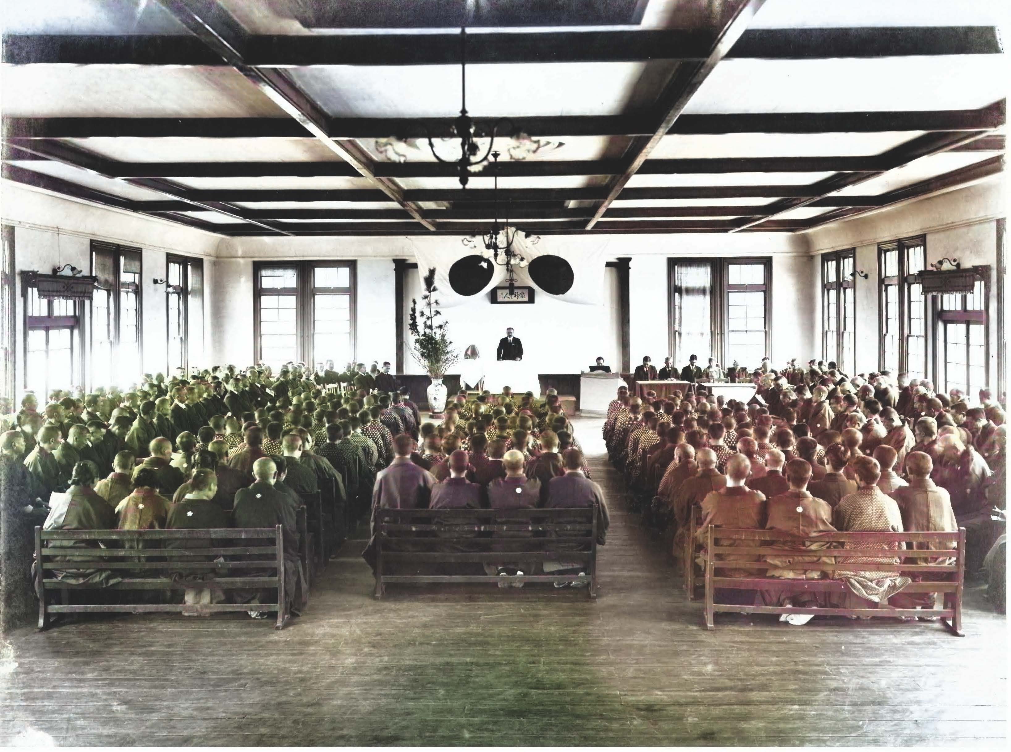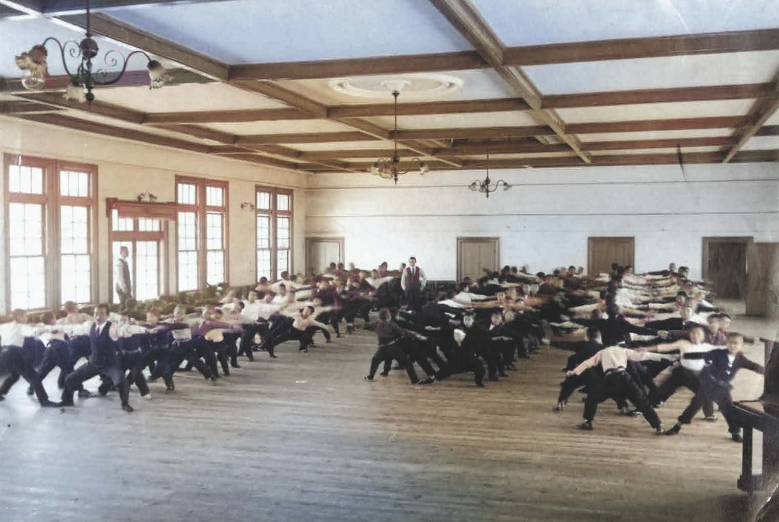 120.52p⑥大正11年(1922)講堂での体育の授業