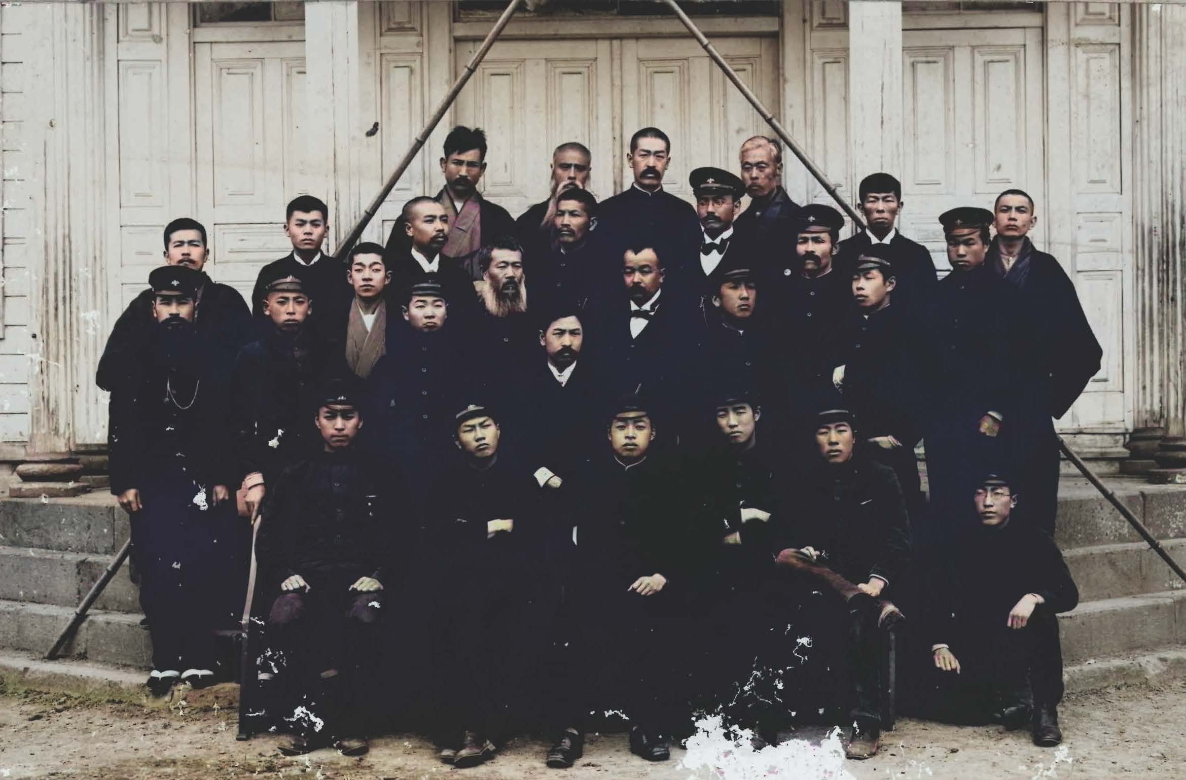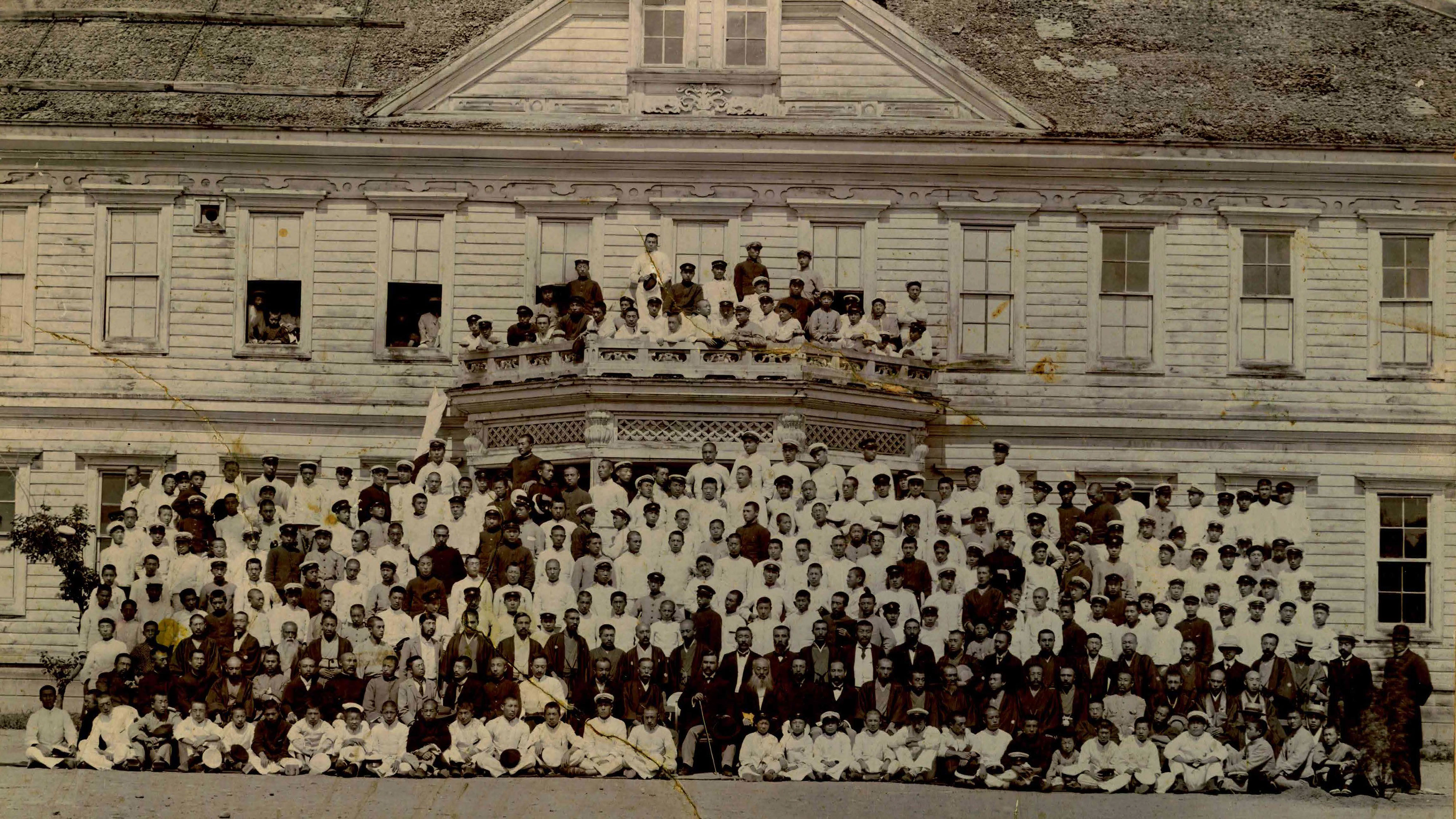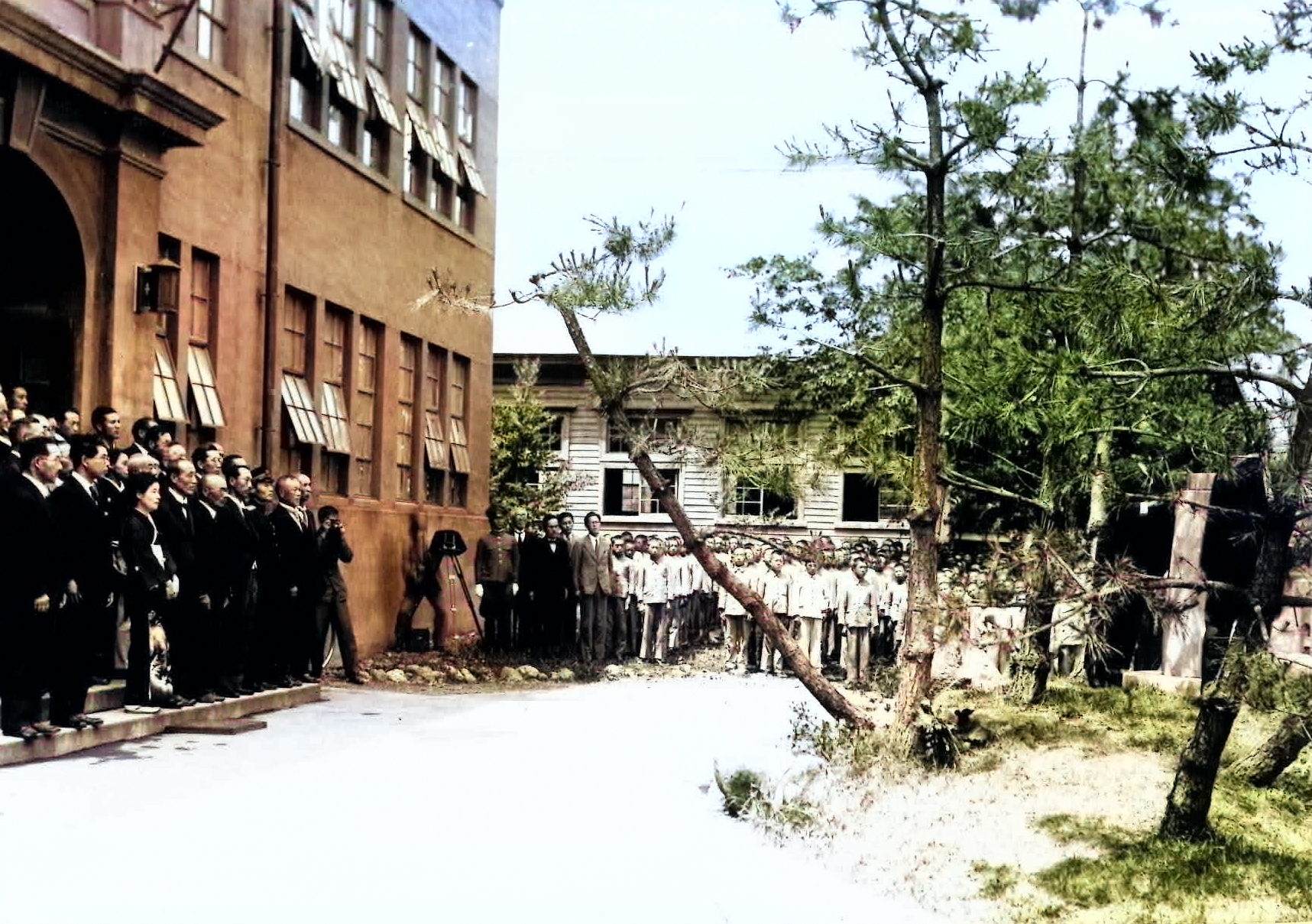 創立150周年を記念して本校の歴史ある白黒写真をカラー化することに挑戦しました。白黒写真はすでに創立120周年記念誌として作成された『写真でみる東奥義塾120年』で公表されている白黒写真を時系列にそって「Adobe Photoshop」のAI技術を利用して人物写真と施設写真を中心にカラー化しました。一部カラー化でムラのある写真がありますが、今後数年かけて補正していきたいと考えています。このカラー化で明治・大正・昭和の東奥義塾の歴史を楽しんでいただければ幸いです。