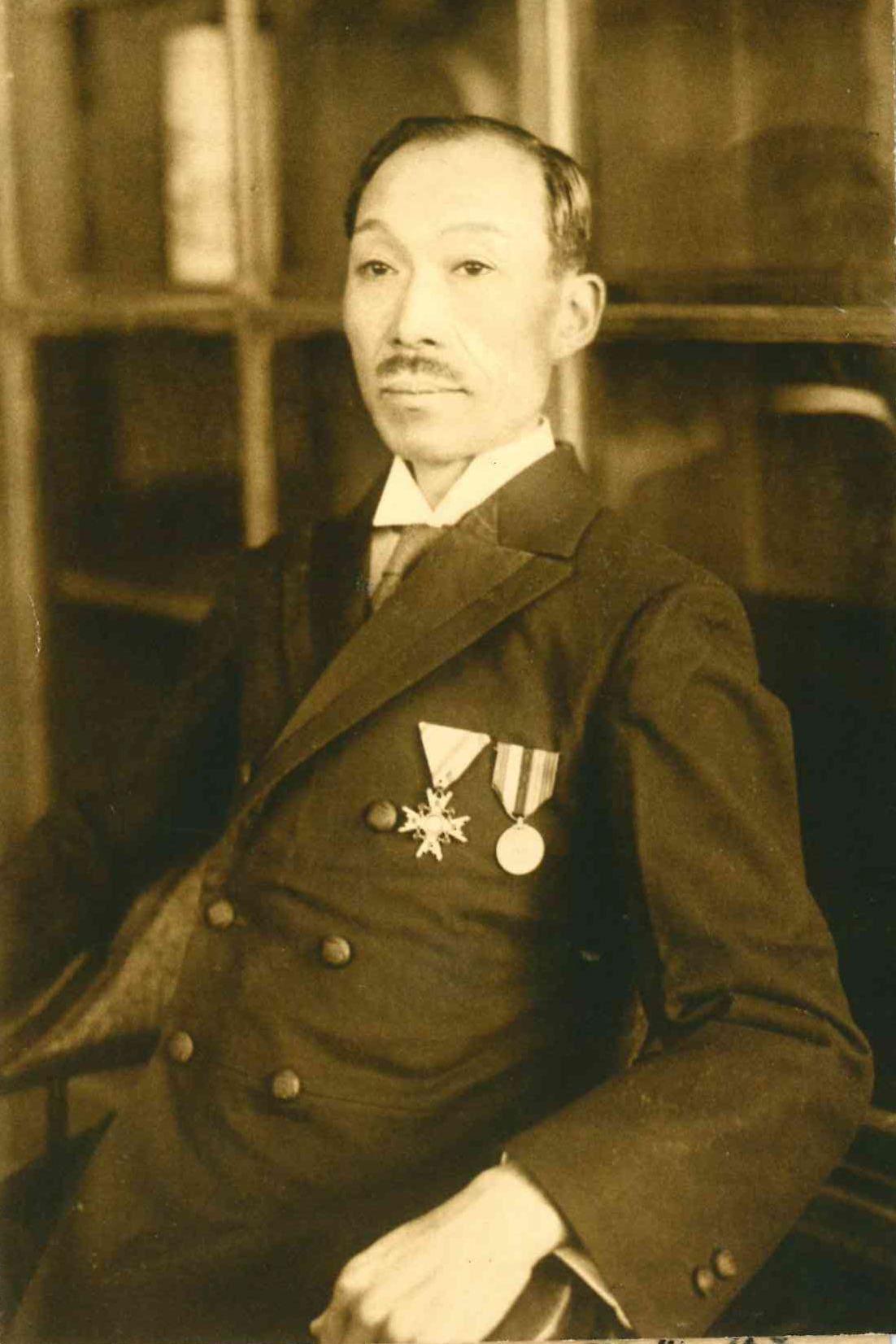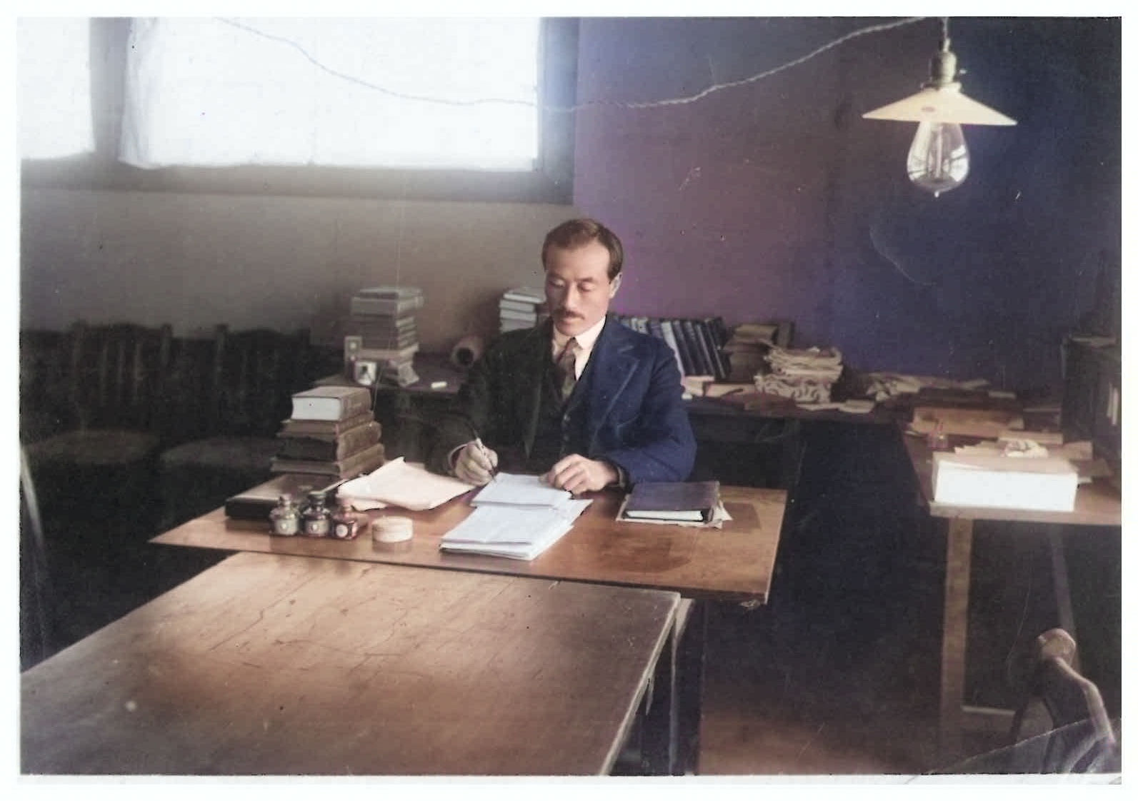 120.52p②大正11年(1922)塾長室にて笹森順造