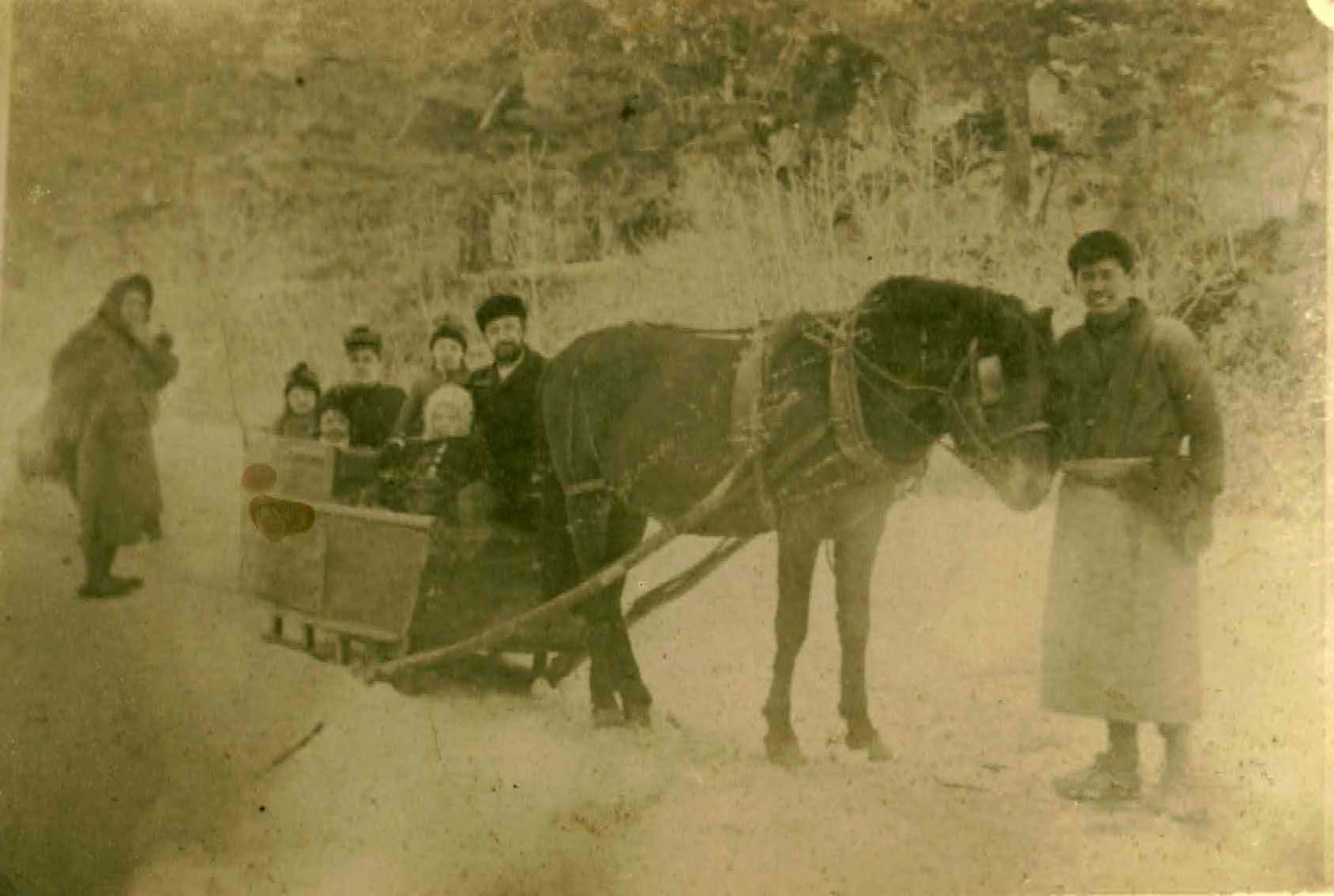 120.41p②明治26年(1893)馬橇に乗るワトマン先生一家