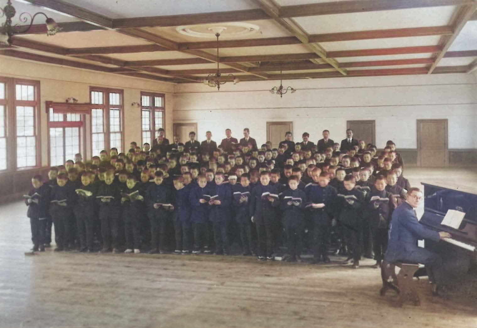 120.52p⑤大正11年(1922)講堂での唱歌の授業