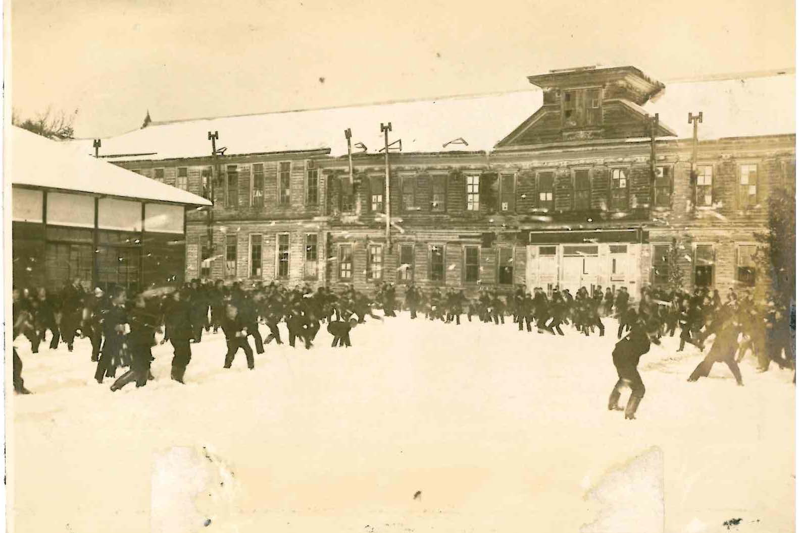 120.59p③昭和3年(1928)12月校庭での雪合戦