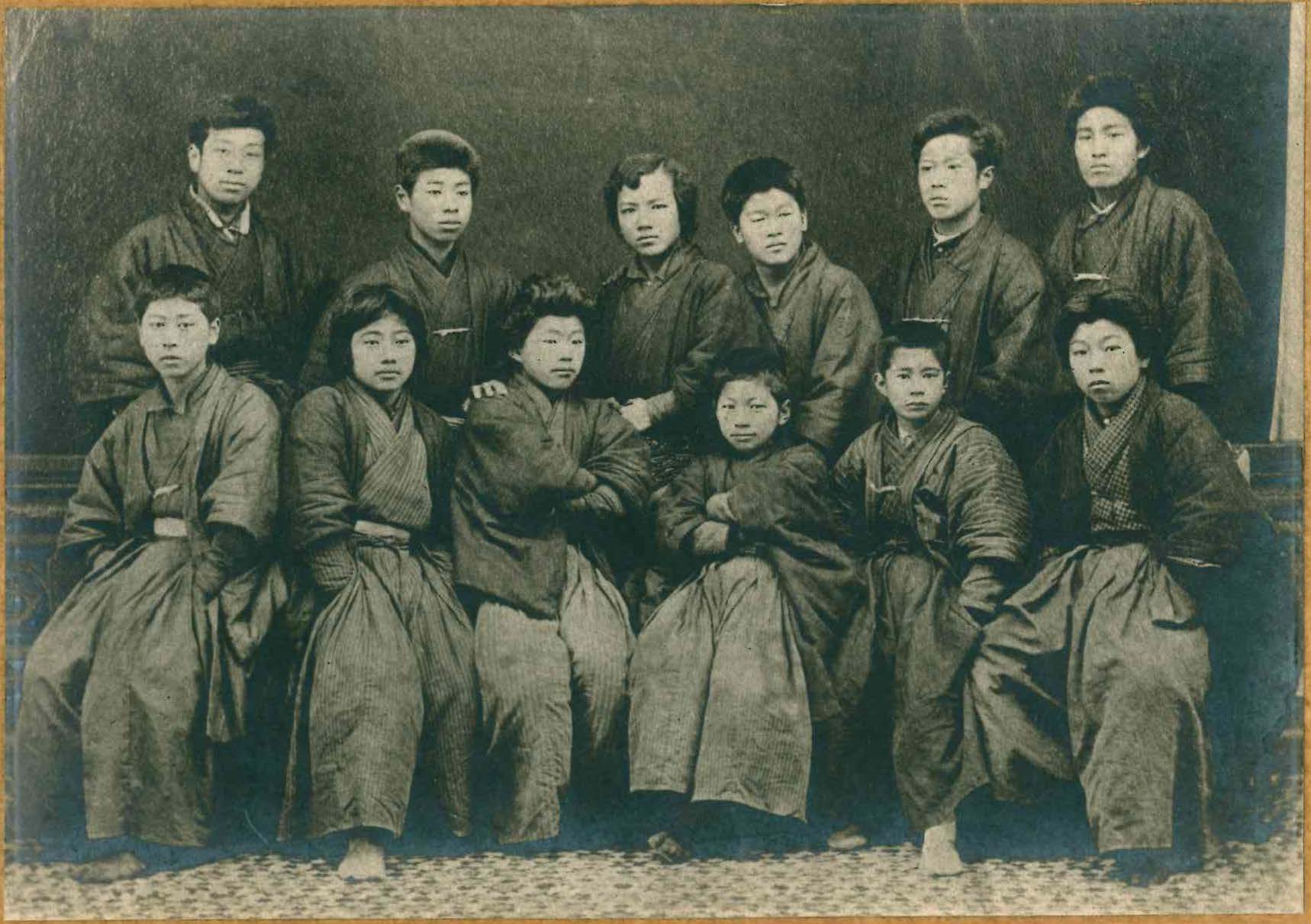 120.30p①明治7年(1874)マクレイ先生と生徒たち