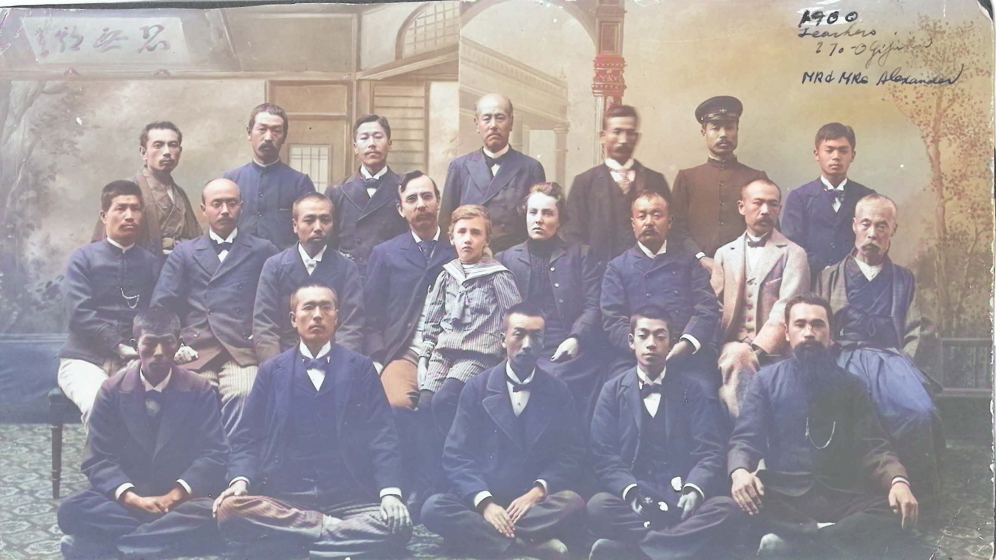 120.42p①明治33年(1900)アレキサンダー一家と学校関係者