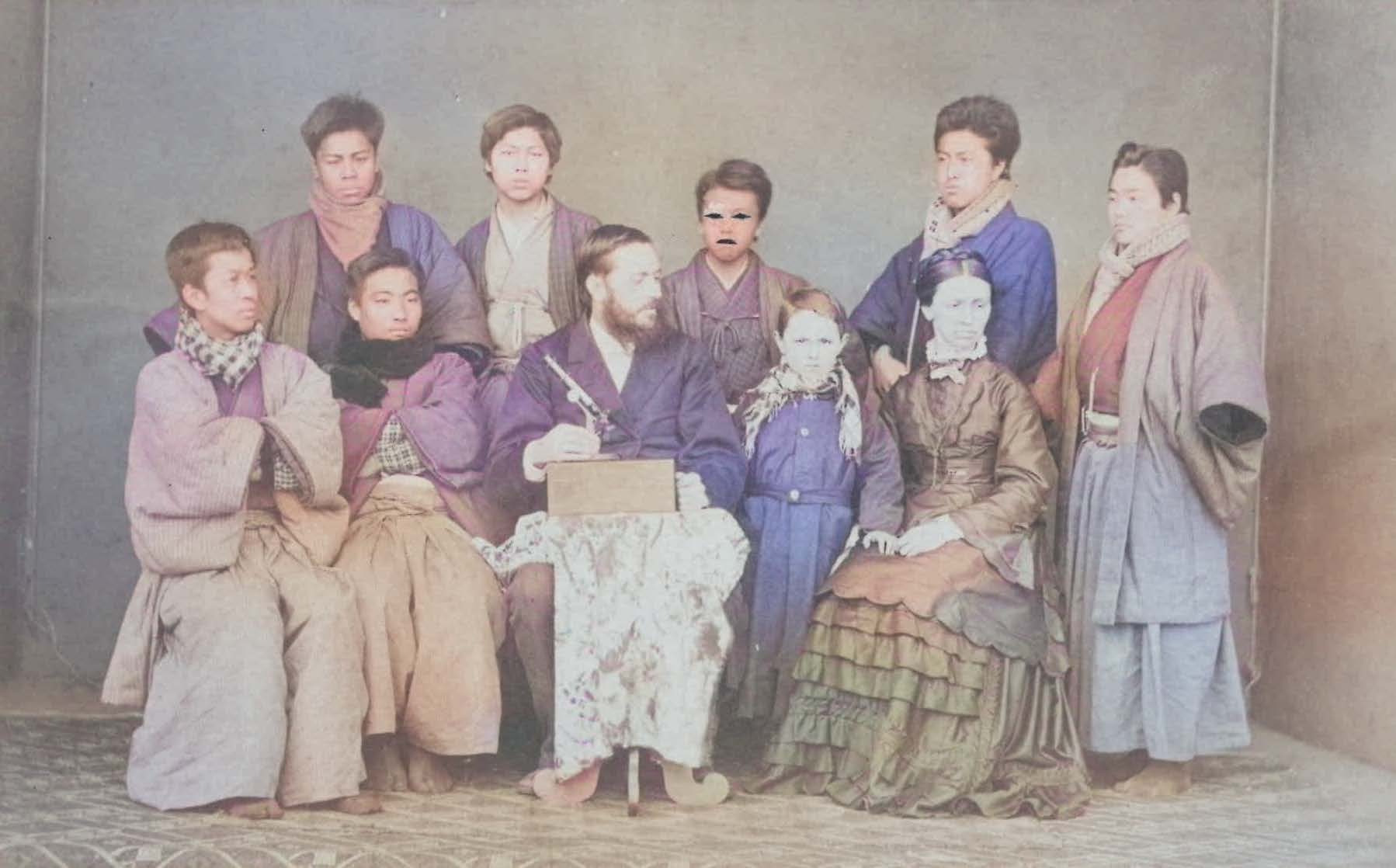 120.25p①明治7年(1874)1月ウォルフ夫妻と教師・生徒