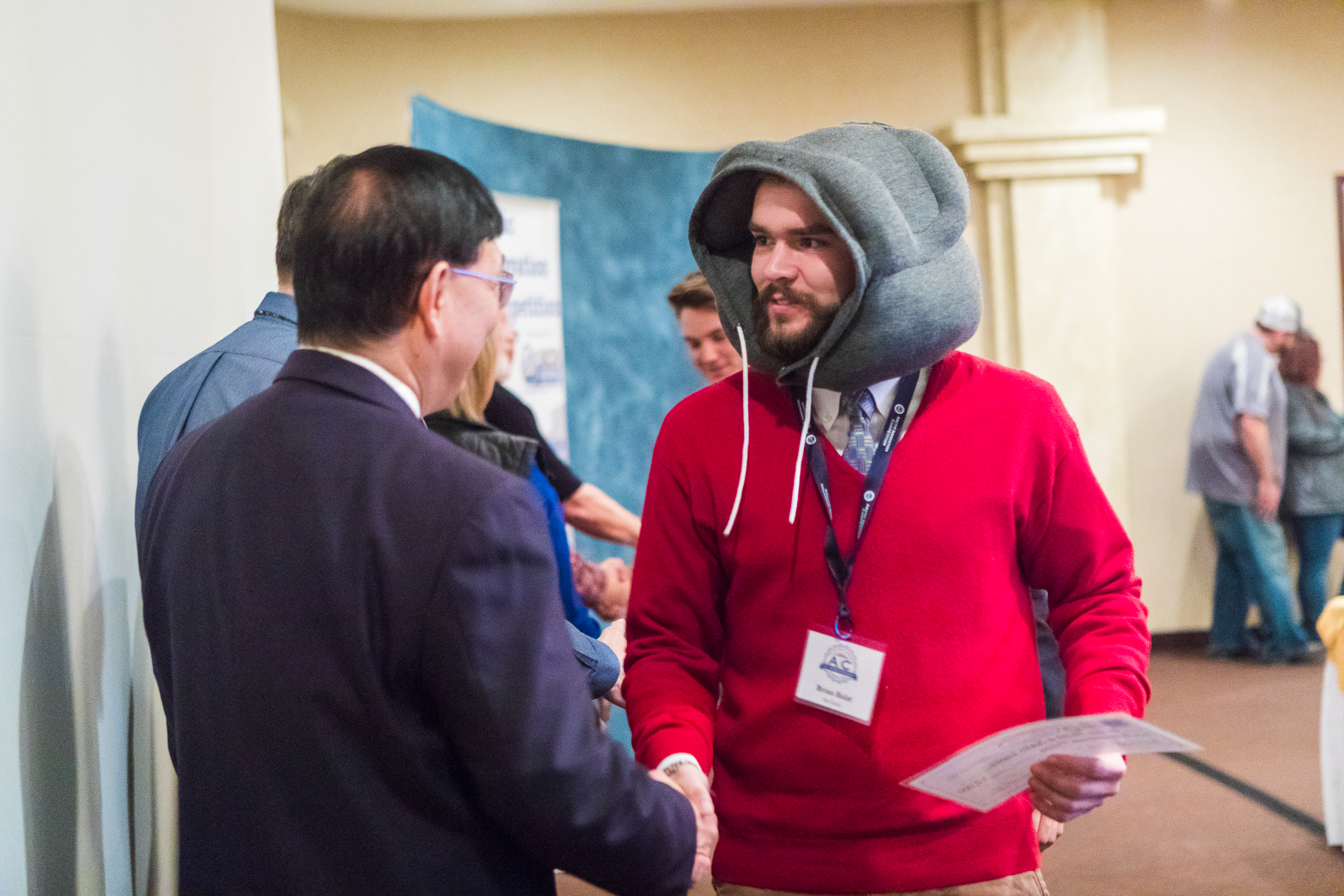 Eric Hartley, one of the competitors for the 2018 Arctic Innovation Competition (AIC), was a part of the start-up weekend team that created the perfect solution for those late nights out when all you need is a little bit of comfort: the Hoodillow. Imagine a soft and cozy hoodie, with an added twist - a neck pillow sewn right into the hood.