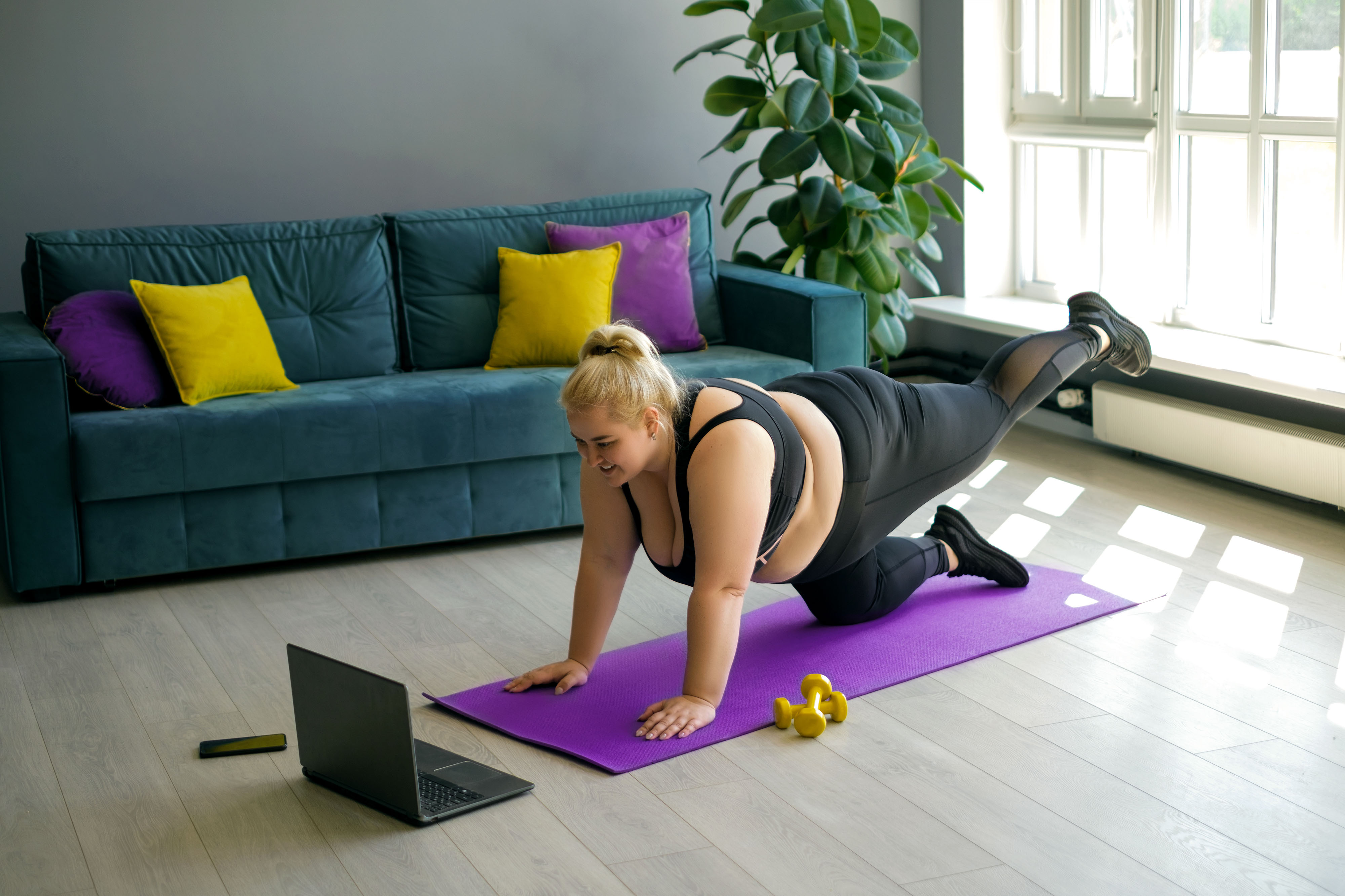 Created with images by Анна Терелюк - "Three bright orange pumpkins sit atop a knitted blue blanket surrounded by autumn leaves, capturing the essence of fall.,Vibrant orange pumpkins on cozy blanket." • shurkin_son - "People, sports and fitness concept. Energetic plus size young woman in sneakers sitting on mat training, repeating exercises after professional instructor, watching online video lesson on laptop" • Jacob Lund - "Close up of a female athlete relaxing listening to music" • Maryna - "Curvy woman does sports with a trainer online at home in the living room, repeating exercises from a video on a laptop. Online workout session. " • inesbazdar - "Exhausted man after exercise drinking water and wiping sweat with towel." • jordi - "Two senior female friends hiking together through the forest in autumn" • Nikokvfrmoto - "Trekking sul Lago di Como"