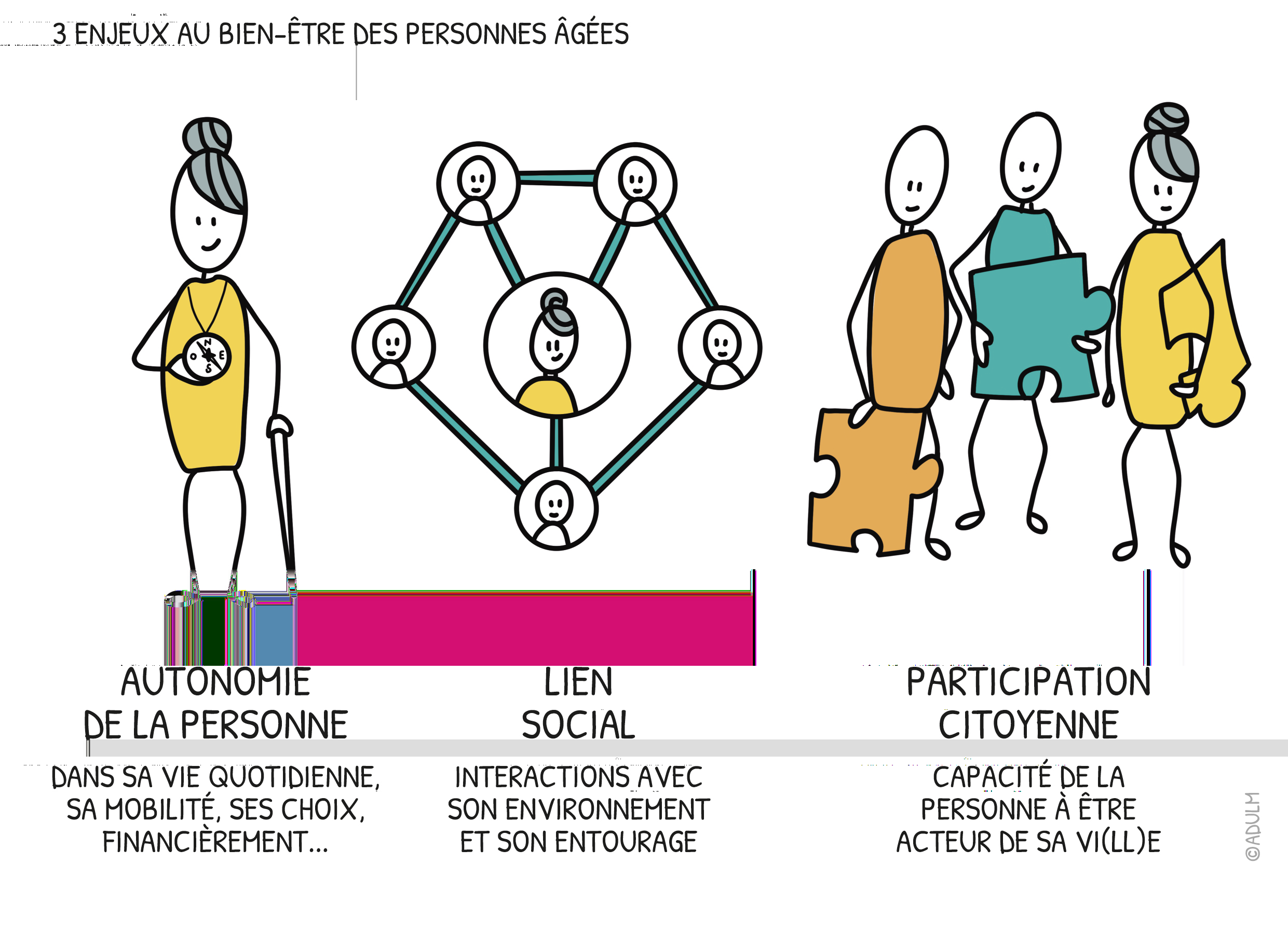 Dans un contexte de nécessaire adaptation des territoires au phénomène de vieillissement de la population, les acteurs partagent la conviction que pour favoriser le bien vieillir, il faut pouvoir garantir l’autonomie de la personne, ses interactions avec son entourage et son environnement, de même que sa capacité à être et rester acteur de sa vi(ll)e.