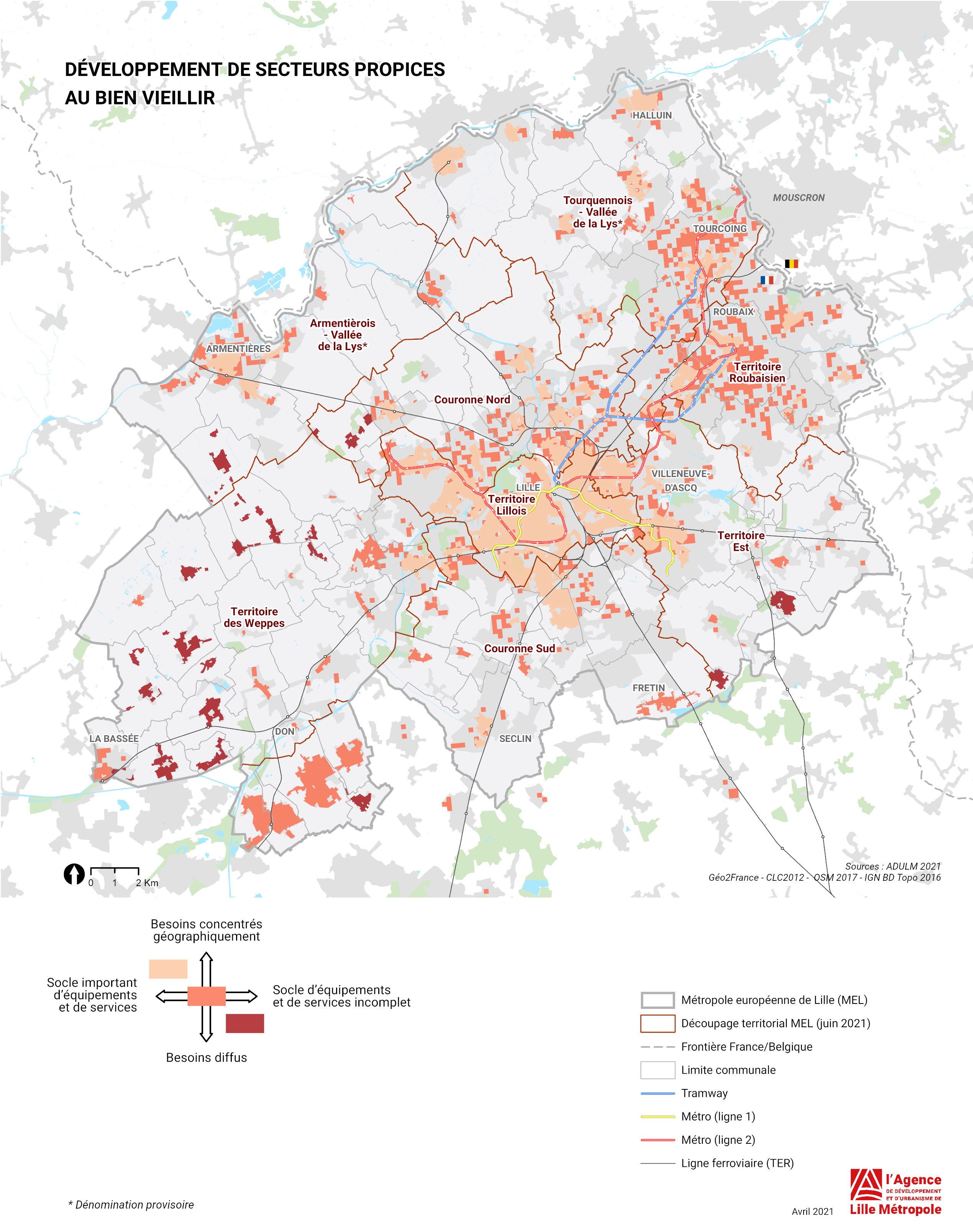 Pour permettre le développement de territoires propices au bien vieillir au sein de la MEL, un premier travail d’identification de secteurs et de catégorisation en plusieurs types de zonages est en cours de réalisation en concertation avec les élus et les acteurs locaux.