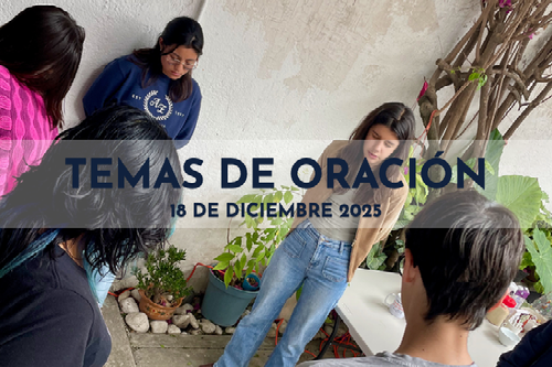 Keila: 1) Por su suegra, que fue con el nefrólogo y le dieron un nuevo tratamiento. Que Dios le ayude a adaptarse al nuevo tratamiento. 2) Por la salvación de la familia de Richie. 3) Por los viajes a Juchitán, primero Richie y después Keila. 4) Por su familia que van a pasar juntos el este fin de semana. 5) Por la salvación de Karla y su novio. ❊ Eli: Por su hijo Irving, por su salvación. Que Dios refuerce su fe y sigan en el camino de Dios. ❊ Naye: 1) Para que se sienta mejor, ya que ha tenido mucho sueño y otros síntomas del embarazo. Por Zabdi que siga conociendo del Señor. ❊ Karla: Por un nuevo lugar para vivir. Que el Señor provea. ❊ Estefanía: Por el viaje a Oaxaca con su familia por Navidad. ❊ Etni: Por el viaje a Pachuca por Navidad. ❊ Agus: Para que nadie más se enferme en casa y que él pueda acercarse más a Dios. ❊ Laila: Para que pueda encontrar la manera de estudiar y trabajar al mismo tiempo el siguiente semestre y para usar su tiempo libre de manera más productiva.