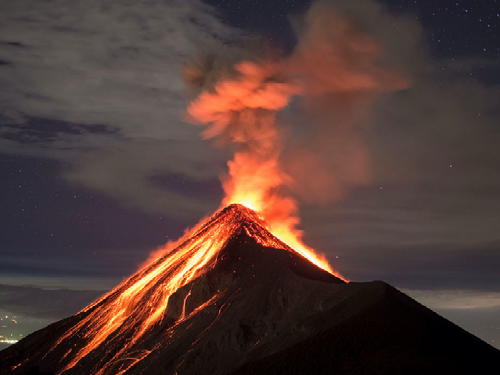 Los volcanes pueden producir vidrio, esto sucede cuando ocurre un enfriamiento brusco de la lava, rica en óxido de silicio, convirtiéndose luego en una roca en estado vítreo (vidrio).