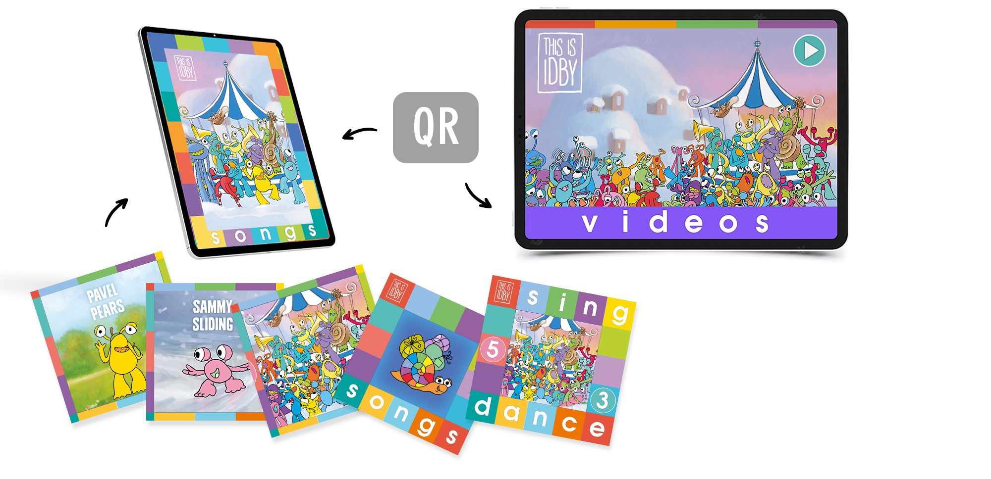 Idby 'sing along' songs introduce each character in a playful and fun way, whilst building language skills and retention. There are 12 character songs and 12 karaoke style videos.