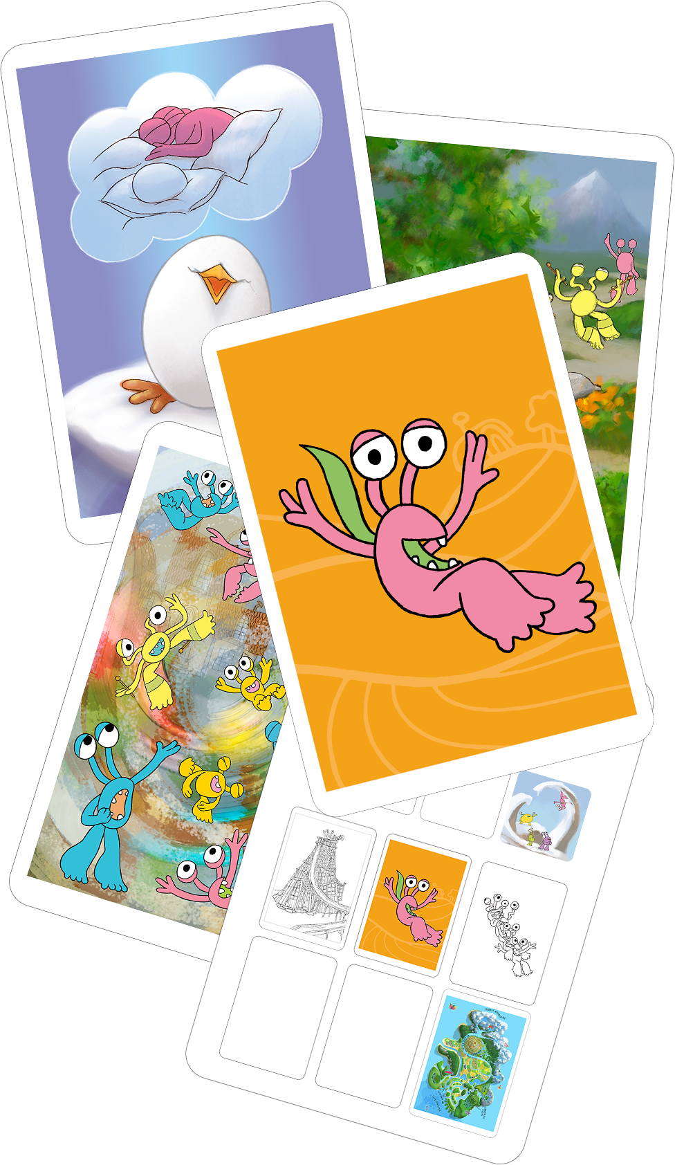 - posters, colouring in, badges and stickers, memo card game