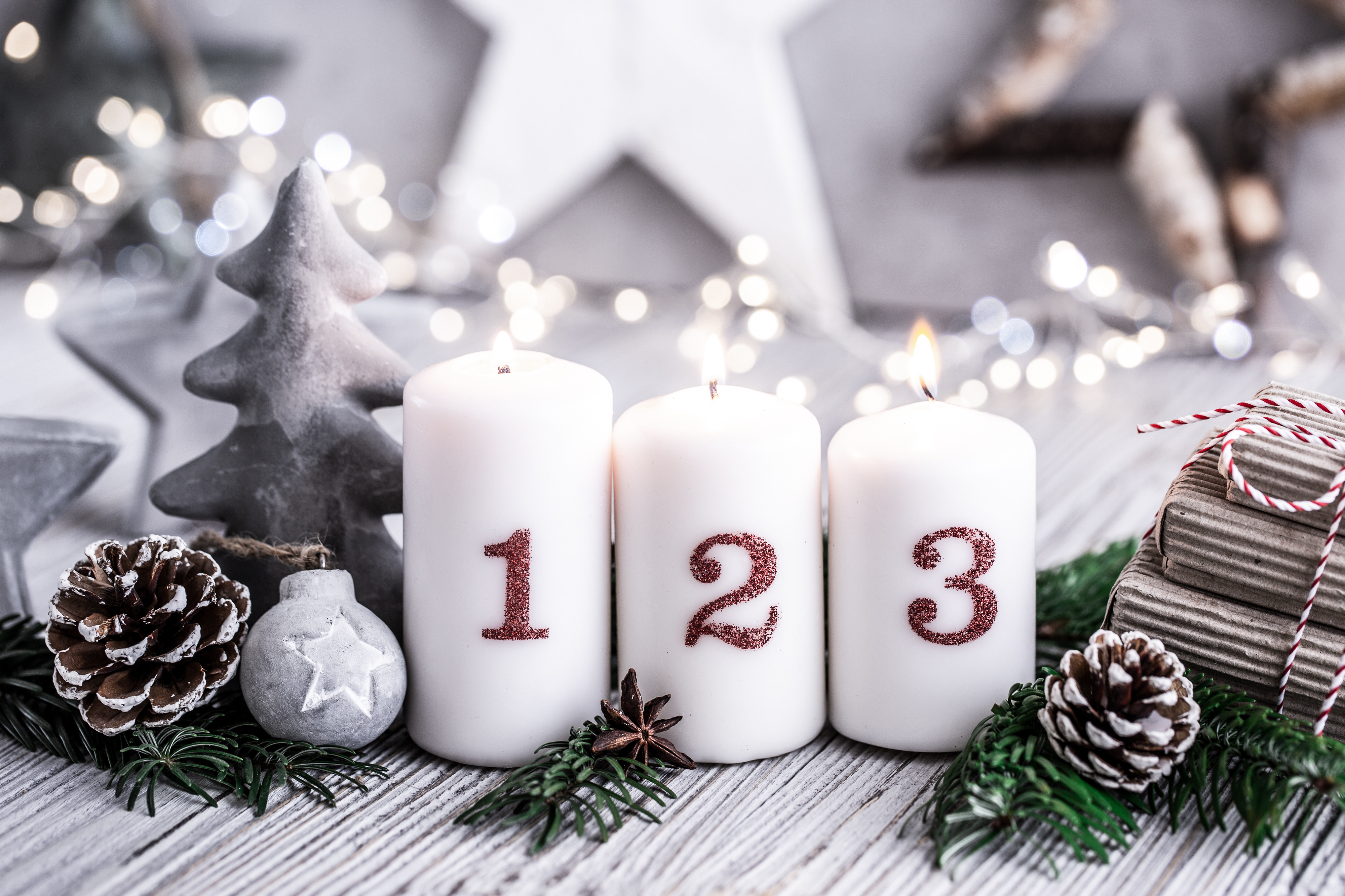 Created with images by shuravi07 - "Christmas composition flatlay. Spruce branches, red berries on white background with space for text" • Photocreo Bednarek - "Christmas tree in glass ball on snow. Glitter lights" • drubig-photo - "Dritter Advent " • Kara - "Three candles lit in advent wreath for third week of advent with pillar candles on dark wood" • jelenayukka - "Snowman with christmas tree , music notes, instruments on wooden background " • chandlervid85 - "Sweet pancakes with blueberries and raspberries on white wood " • patpitchaya - "Human Chain Paper" • vectorfusionart - "Composite image of red seamless knitted pattern" • SewcreamStudio - "Hand choosing green tick paper cut, feedback rating and positive customer review, experience, satisfaction survey ,mental health assessment concept" • Natalia - "A christmas card with a pine branch and the words merry christmas. AI." • Aragon - "Snow covered Christmas wreath with a bright red bow hanging on a white door, capturing the festive spirit and winter charm of the holiday season."