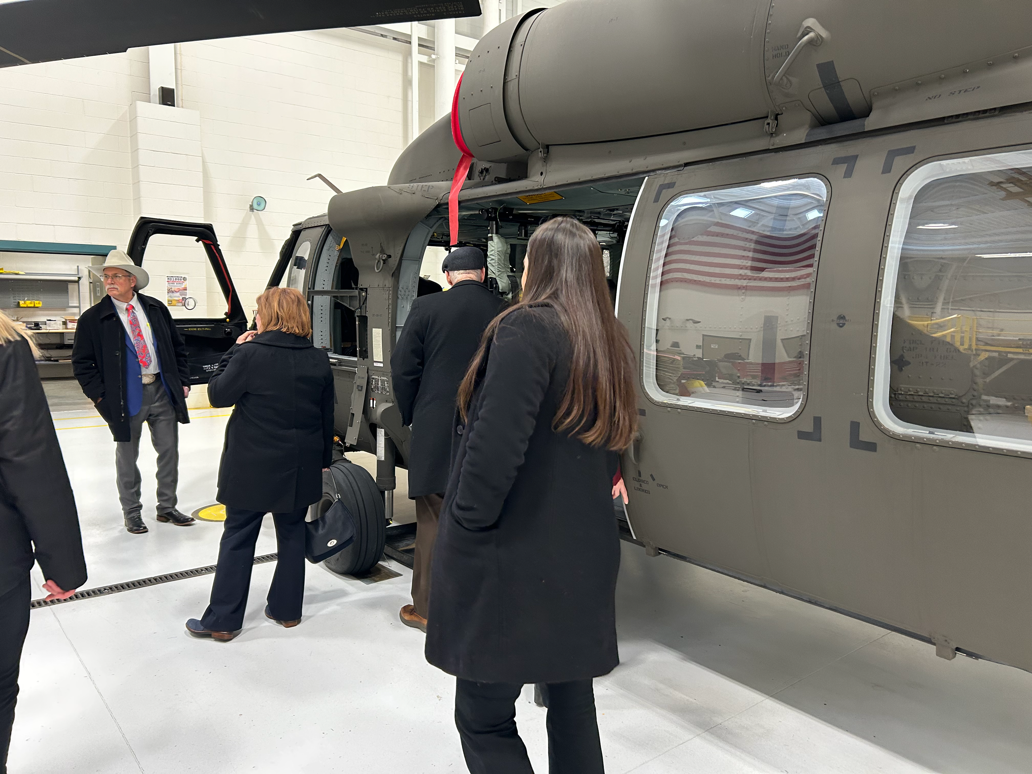 Members and staff of the N.D. State Senate Agriculture and Veterans Affairs Committee toured the N.D. National Guard Army Aviation Support Facility to learn more about the capabilities and uses of aircraft, Bismarck, March 9, 2023. (National Guard story by Maj. Jay Sheldon, N.D. National Guard strategy and policy officer)