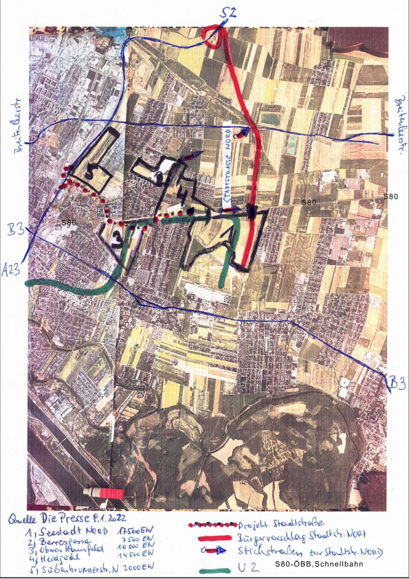 Nach der Vorstellung des Projekts der Stadt Wien „Quartier Süßenbrunner Straße West“ haben wir beschlossen, uns gegen das Bauprojekt und eine weitere Bodenversiegelung auszusprechen und aktiv für die Erhaltung des Grüngürtels und unserer Lebensqualität einzusetzen.