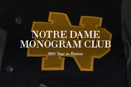 The Monogram Club welcomed over 100 new members during the Spring Monogram Jacket Ceremony. The first-time Monogram winners from the fall sports received their jackets in front of family, coaches and teammates inside the Downes Ballroom at Notre Dame Stadium. Former Fighting Irish football standout, and Super Bowl champion, Ryan Harris ’07 was the featured alumni speaker, while Dick Corbett Head Football Coach Marcus Freeman provided remarks on behalf of the athletics department. Clare Logan '27 (women's soccer) gave the student-athlete reflection.