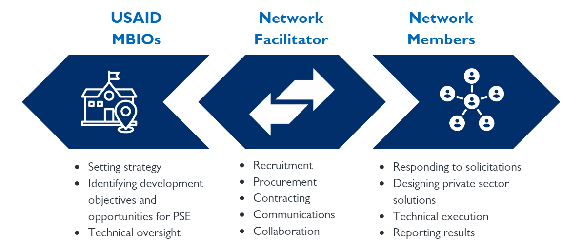 2. Engaging the private sector through a facilitated network approach has delivered benefits in line with the PSE Modernize reform initiative. The role of network facilitator has proven to be essential to allowing USAID and private sector firms to focus on their core competencies.