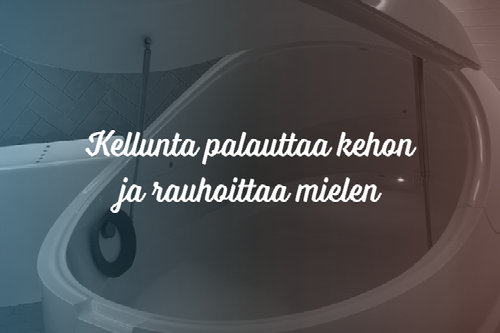 Ensimmäinen ajatus kellunnan alkaessa oli, että kuinka pää kestää kokonaisen tunnin ilman minkäänlaisia aistiärsykkeitä. Heti kun uskaltaa vain rentoutua, keho menettää painonsa ja aistit vaimenevat, mieli alkaa hiljalleen rauhoittua. Ei enää ärsykkeitä, ei painovoimaa, ei jatkuvaa tekemisen tarvetta. Se on kuin palaisi johonkin hyvin luonnolliseen tilaan – olemassaoloon ilman suorittamista.