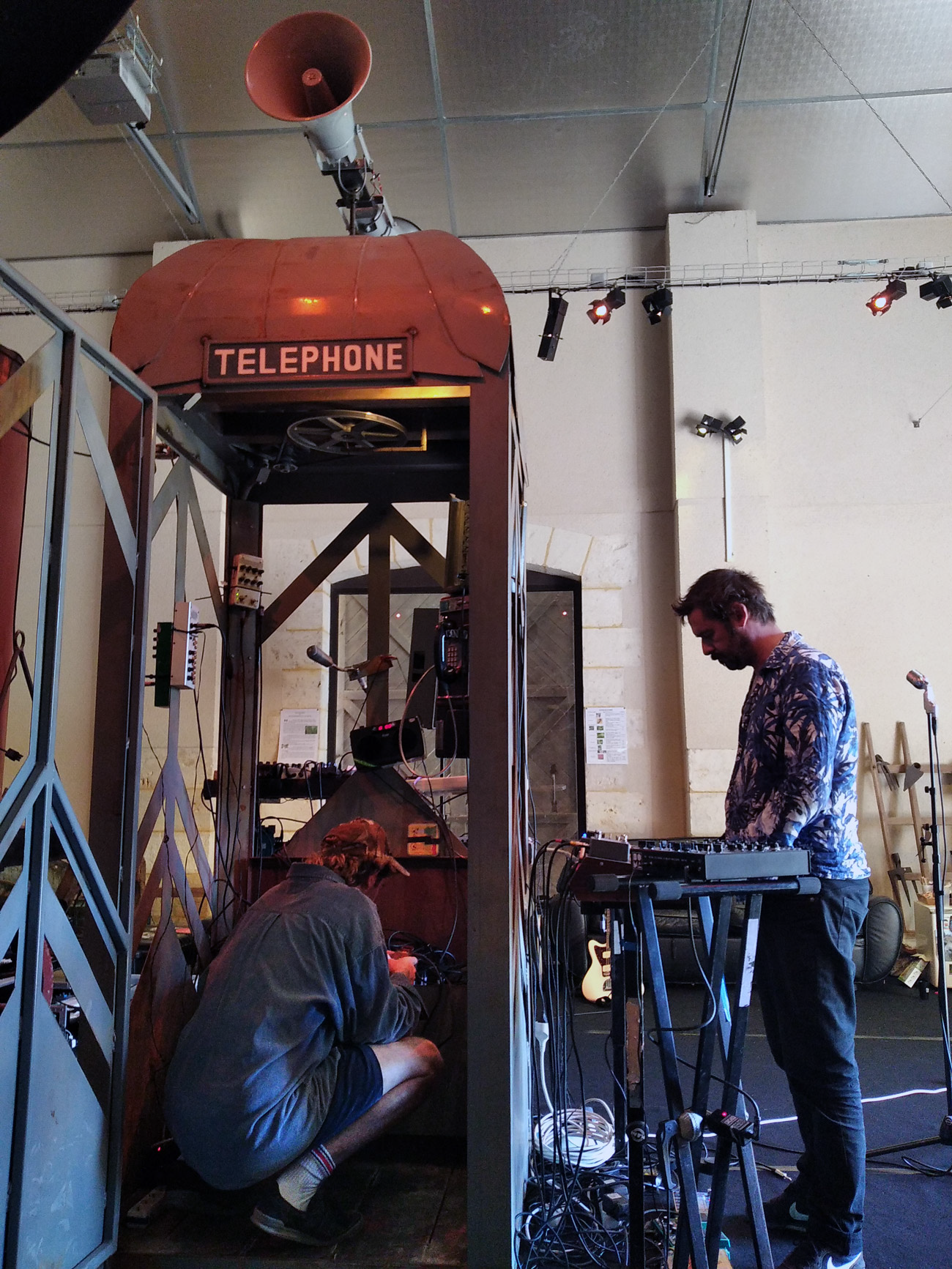 Thoré-la-Rochette, paisible village du Vendômois, septembre 2021. Les effluves synthétiques qui parviennent du Musée de la Vigne et du Vin n’ont ni la saveur du raisin bientôt vendangé, ni le goût métallique des rails de la gare voisine désaffectée. Ce vendredi marque la fin de la semaine de résidence des trois musiciens réunis pour une création autour de Western Electric 3.0, une drôle de cabine téléphonique vintage transformée en instrument de traitement sonore du troisième type.