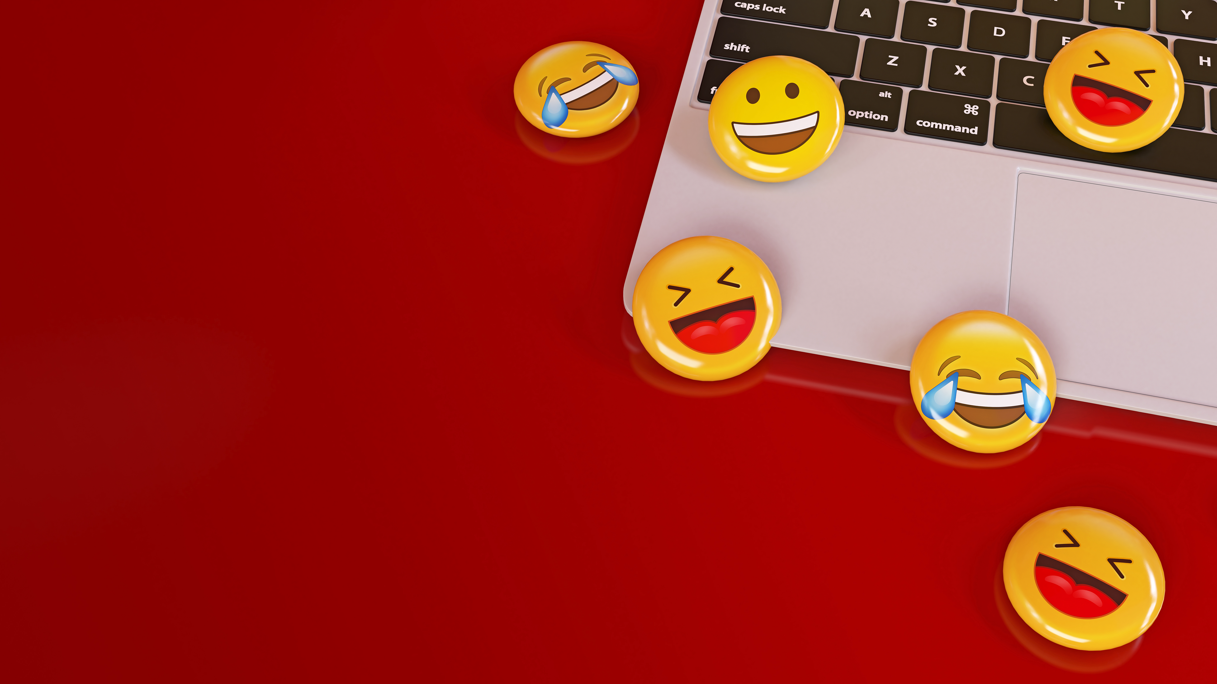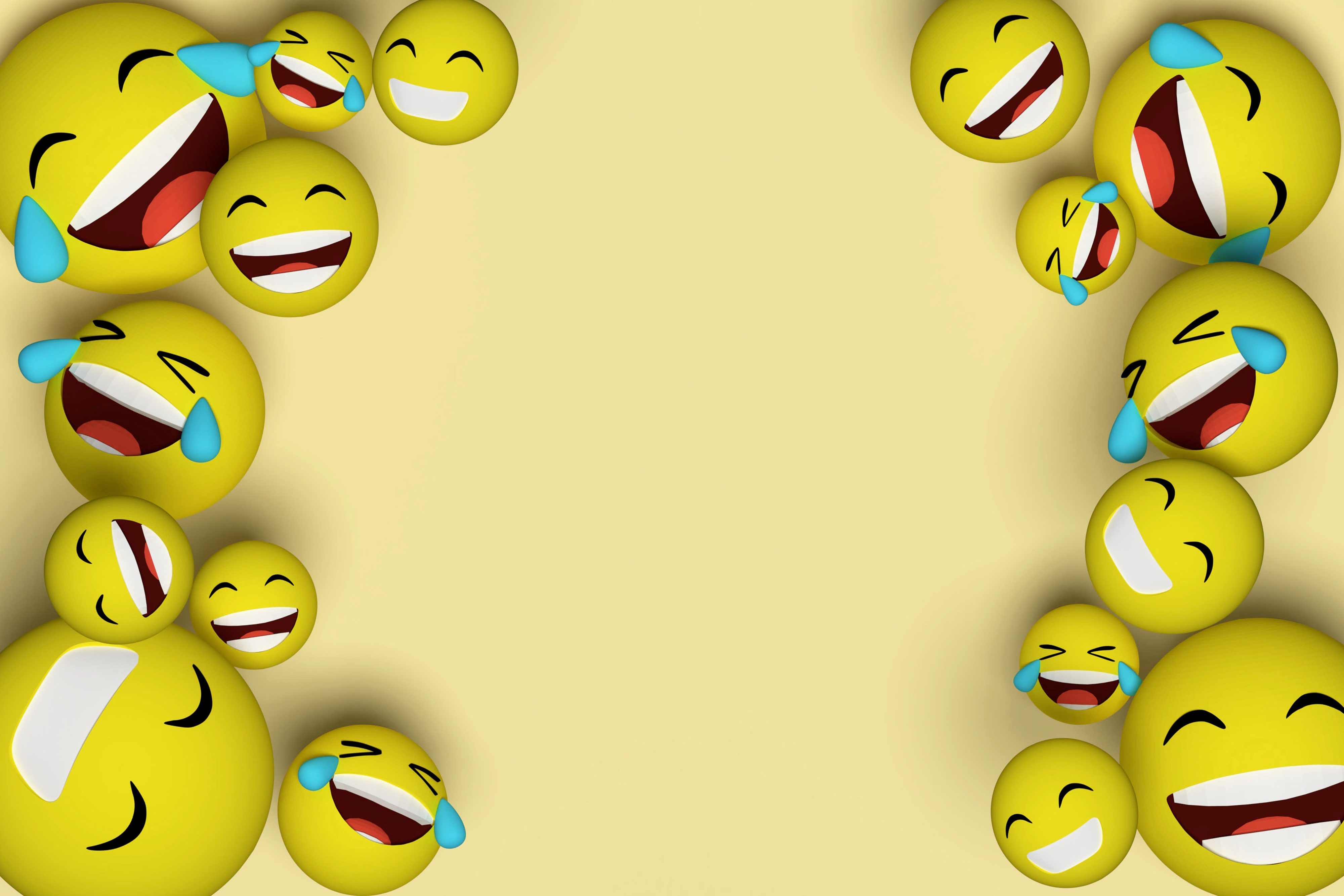Created with images by Rolandjjen - "3d rendering .object smile and laugh emoticons" • EZPS - "3D Rendering laughing emoji with tears isolated on white background" • MMollaretti - "Some laughing and smiling emoji pills over a notebook in red background - 3D rendering"