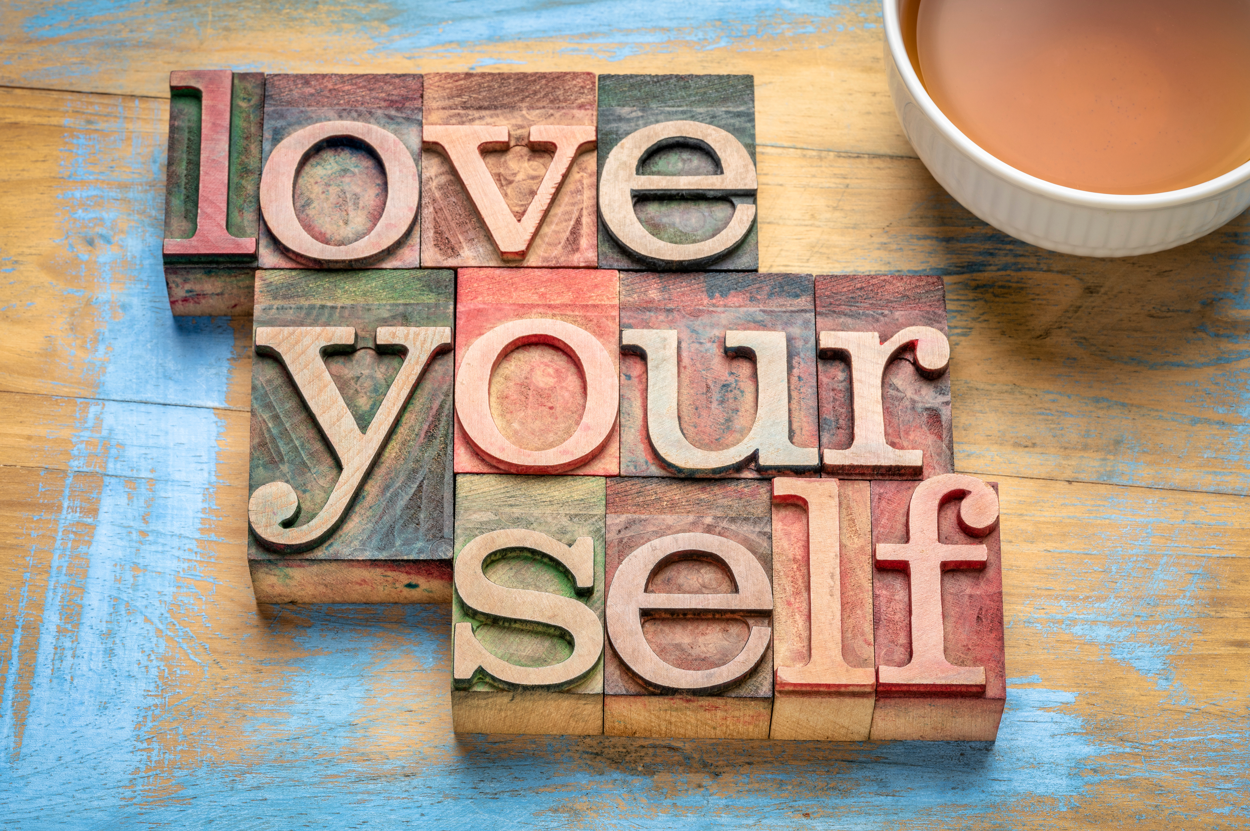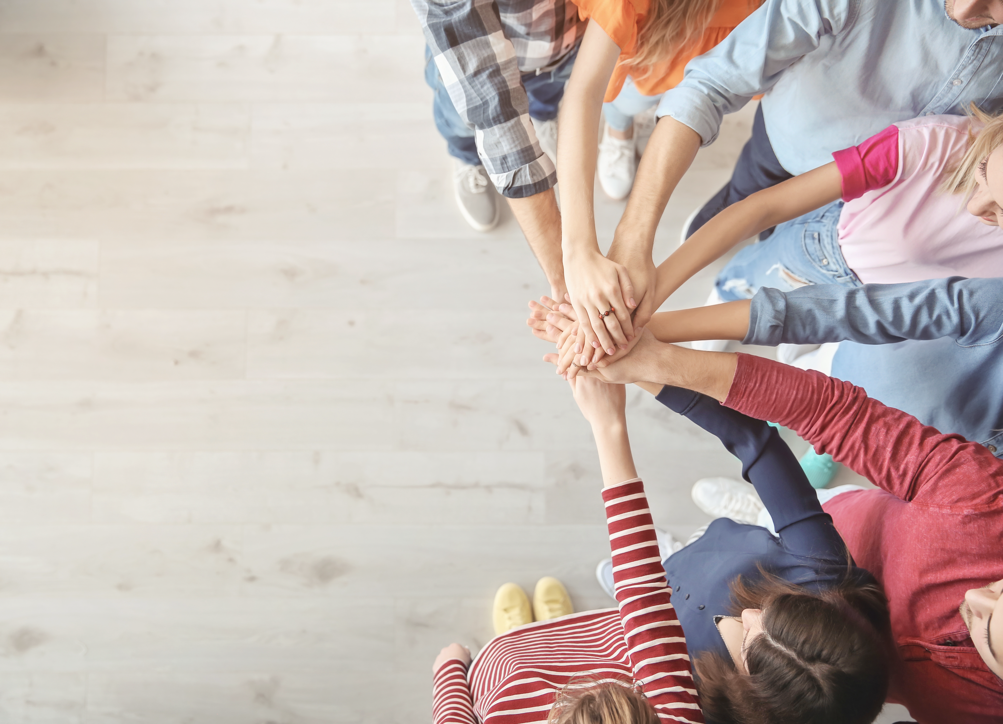 Created with images by Africa Studio - "Young people putting hands together indoors. Unity concept" • MarekPhotoDesign.com - "love yourself word abstract in wood type, self respect concept"