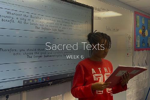 In RE, we have been exploring a range of sacred religious texts and discussing why they are so important to different communities. We looked at the Sikh Guru Granth Sahib and learned how it is treated with great respect, as well as the teachings found within it. We explored the Buddhist Tipitaka and discovered how it guides Buddhists in their beliefs and ways of living. We also learned about the Hindu Vedas, one of the oldest sets of religious writings, and thought about how they influence Hindu traditions today.