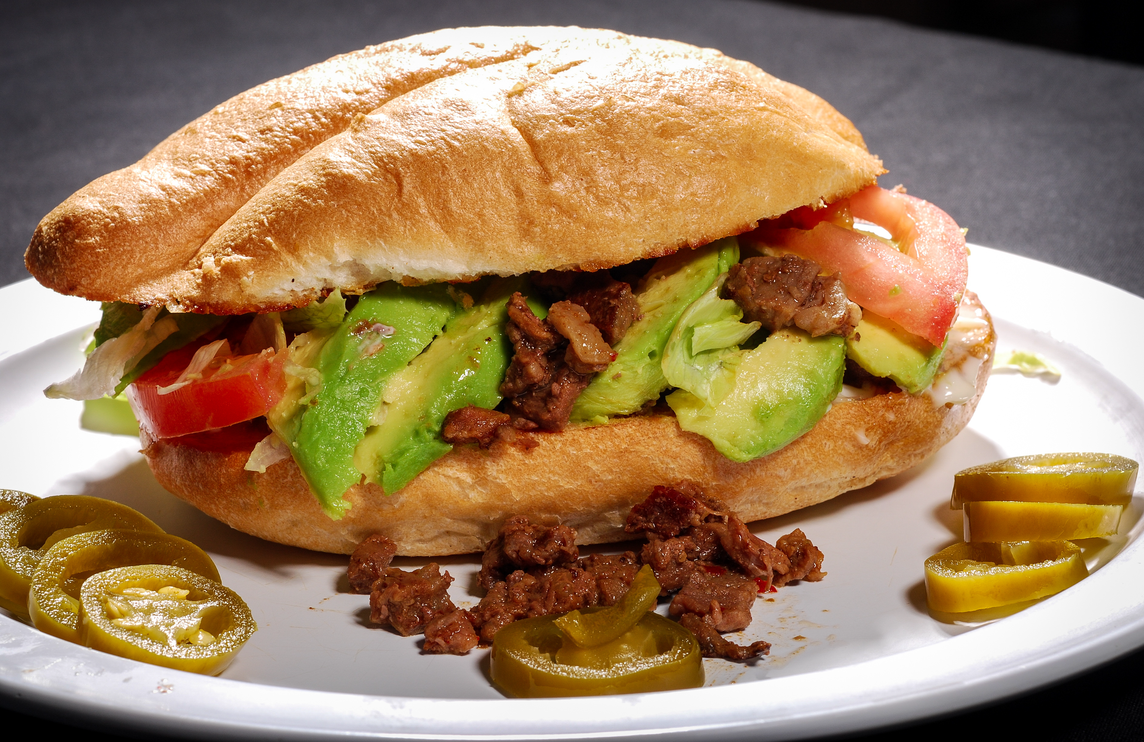 each mexcian sandwich is prepared with lettuce, onion, avocado, mayonnaise and quesillo