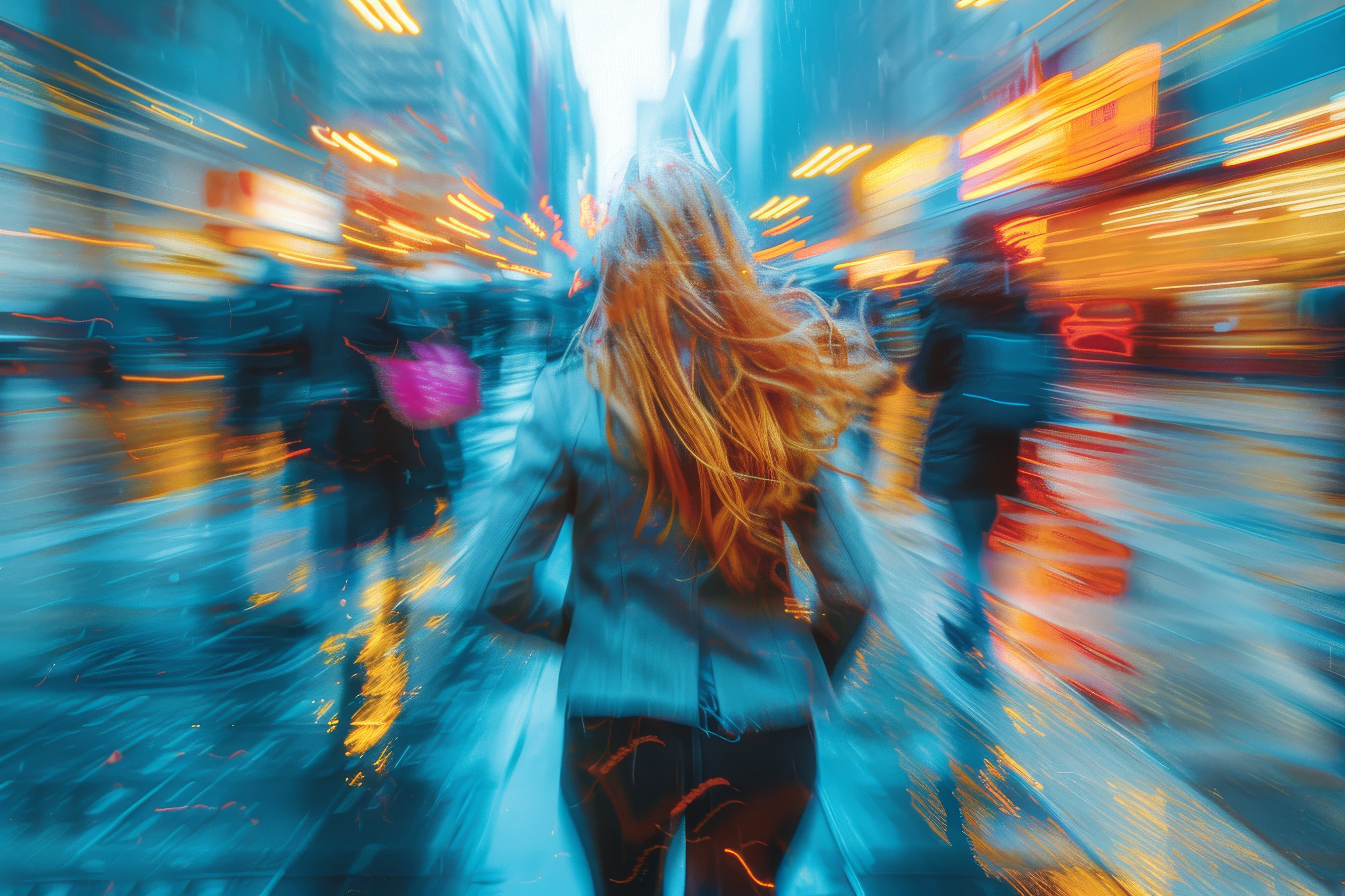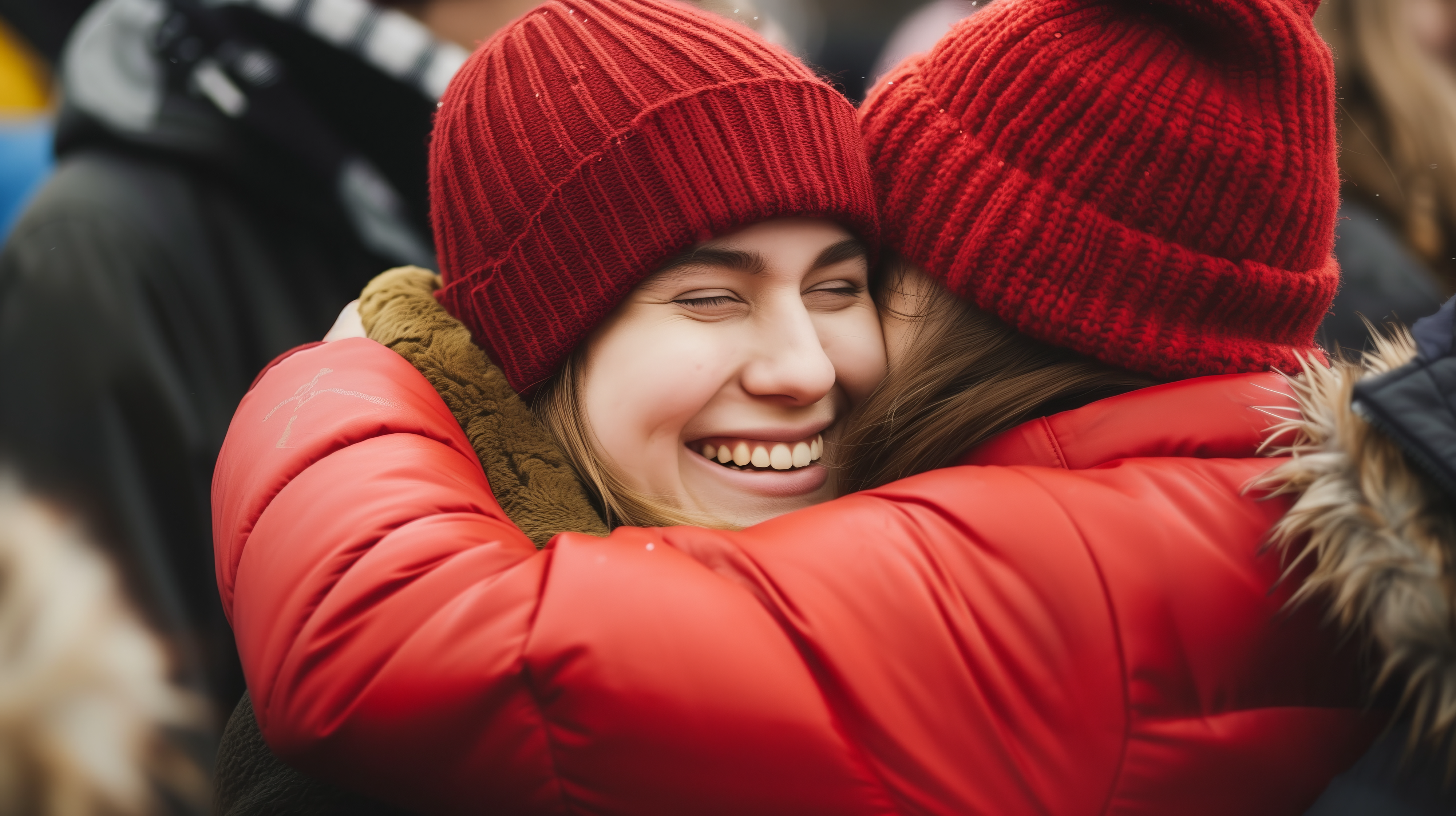 Creato con immagini di Andreas Gruhl - "Portrait, Licht, Schatten" • Larisa AI - "An energetic image focusing on a woman rushing through the vibrant colors of city life" • Vantsura - "Two Friends Share a Warm Embrace in Matching Red Hats During a Winter Gathering Outdoors"