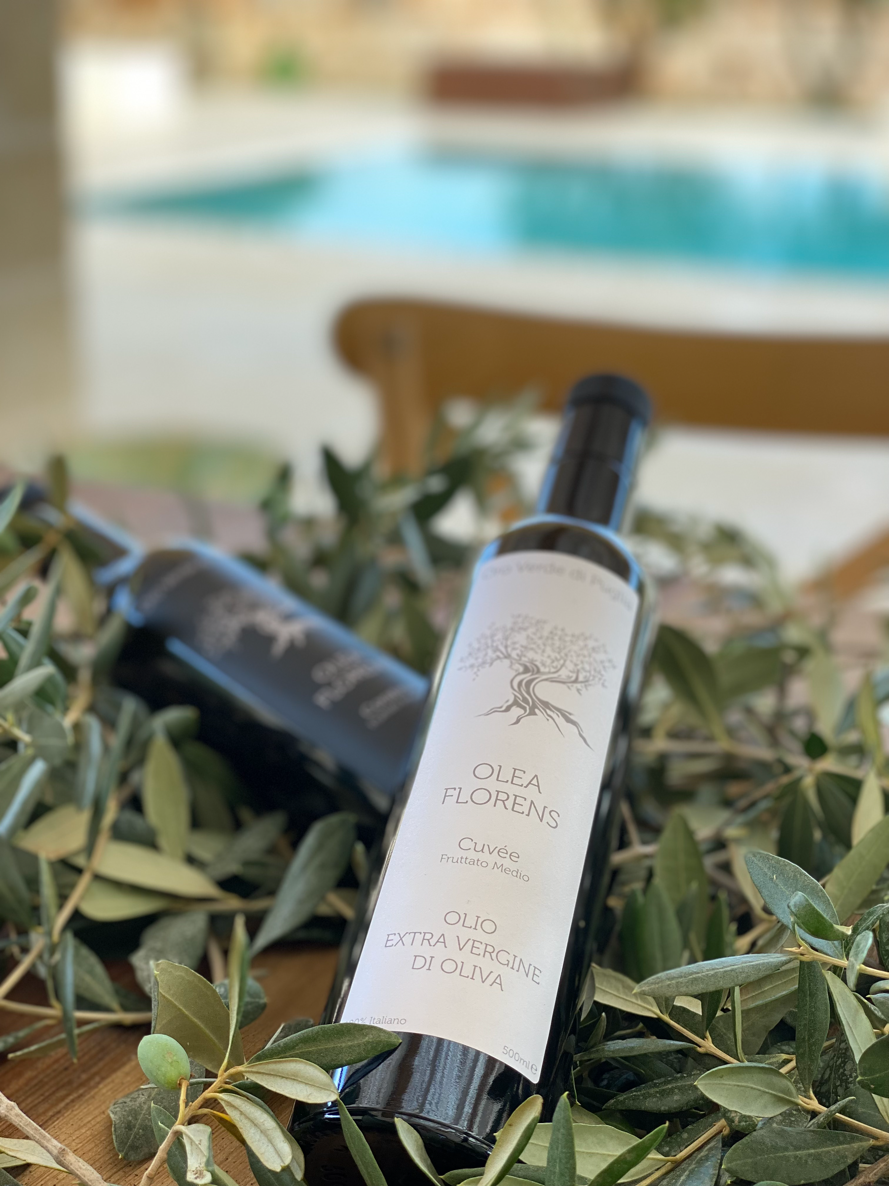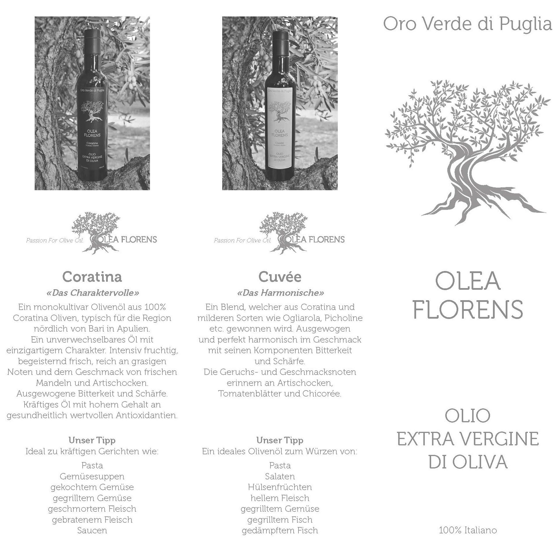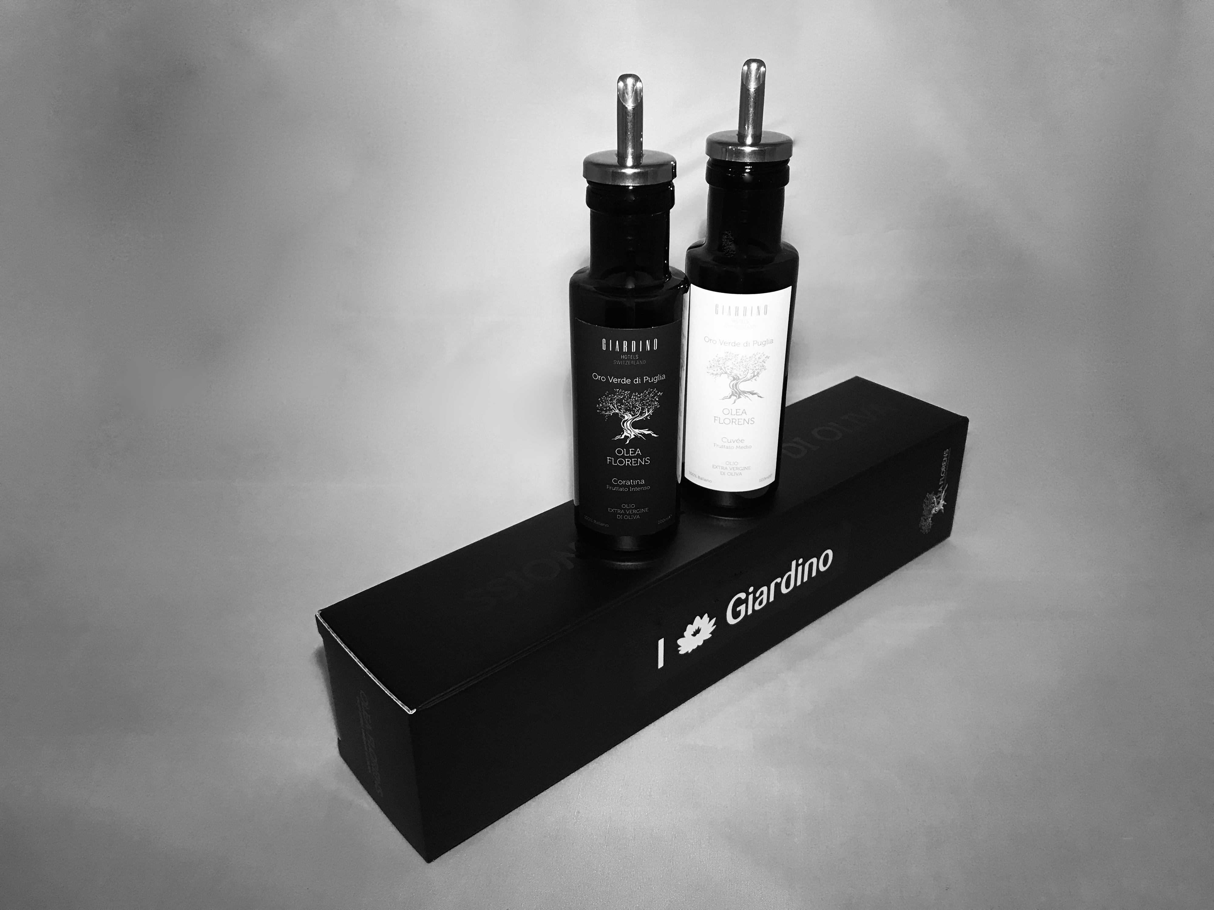 und ein etwas milderes Cuvée, welches ein Blend ist und aus Coratina und weniger intensiven Olivensorten wie Ogliarola hergestellt wird.
