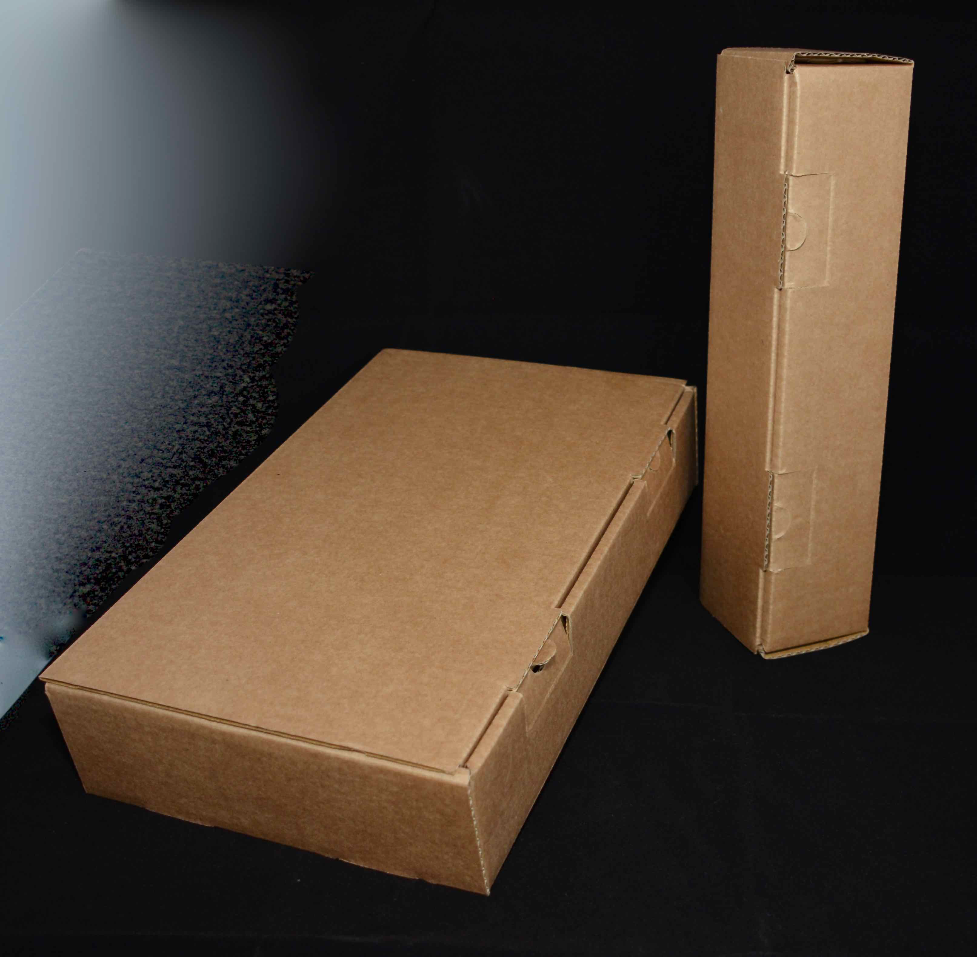 Für den Versand haben wir massgeschneiderte Postversandboxen aus braunem Karton für Einzelflaschen sowie die Doppelboxen.