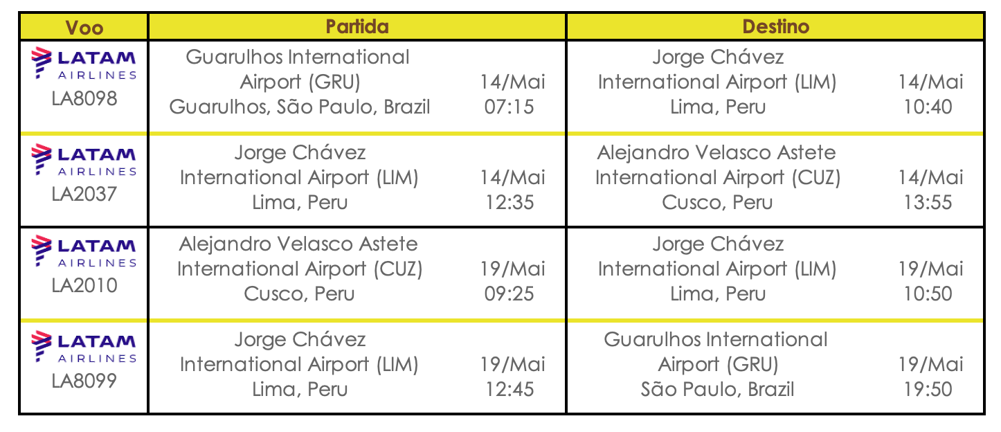 Valores por cotação individual, vide sugestão de aéreo acima.