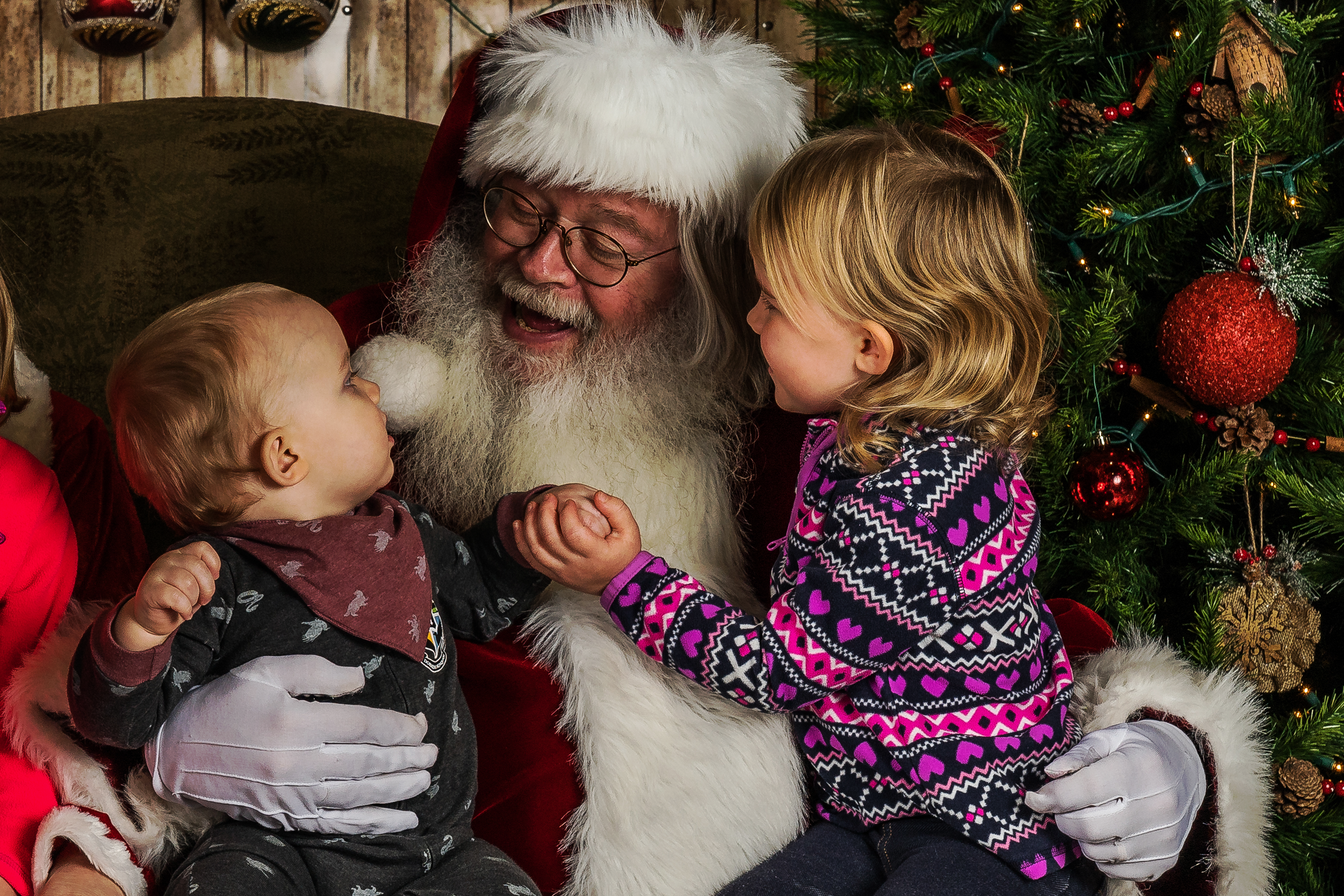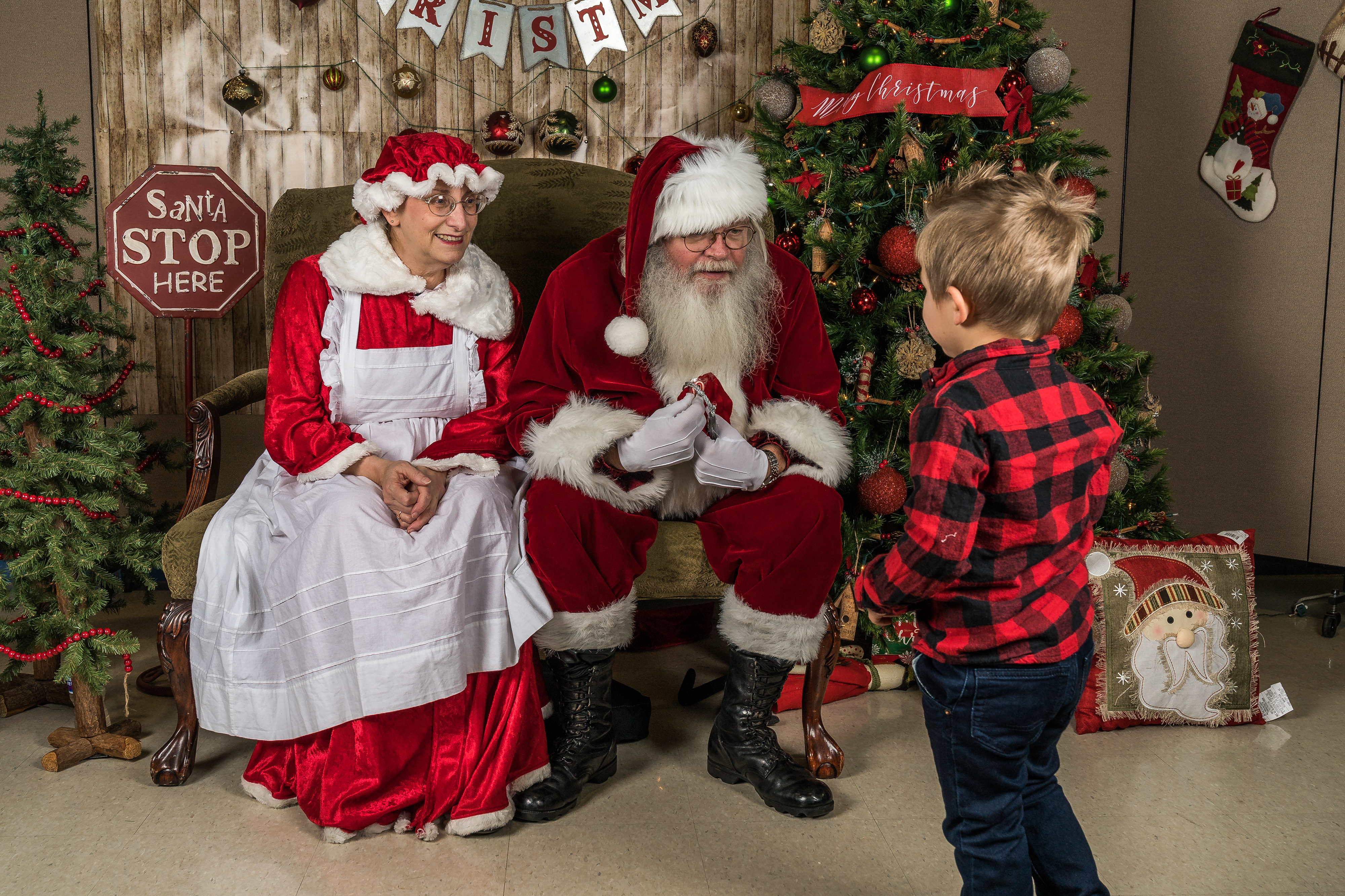 In celebration of the Month of the Military Family, the N.D. National Guard Child and Youth Program hosted a Winter Carnival on Nov. 26 at the Raymond J. Bohn Armory in Bismarck. Military families were treated to a myriad of holiday-themed activities to include cookie decorating, ornament making, participating in an indoor snowball fight, as well as playing games while enjoying hot chocolate. The favorite activity, however, was visiting with Santa and Mrs. Claus, portrayed by volunteers Glenn and Doris Boepple. In its third year, nearly 200 military family members attended this event. Top photo: Santa visits with military children during the N.D. Guard's Winter Carnival on Nov. 26.