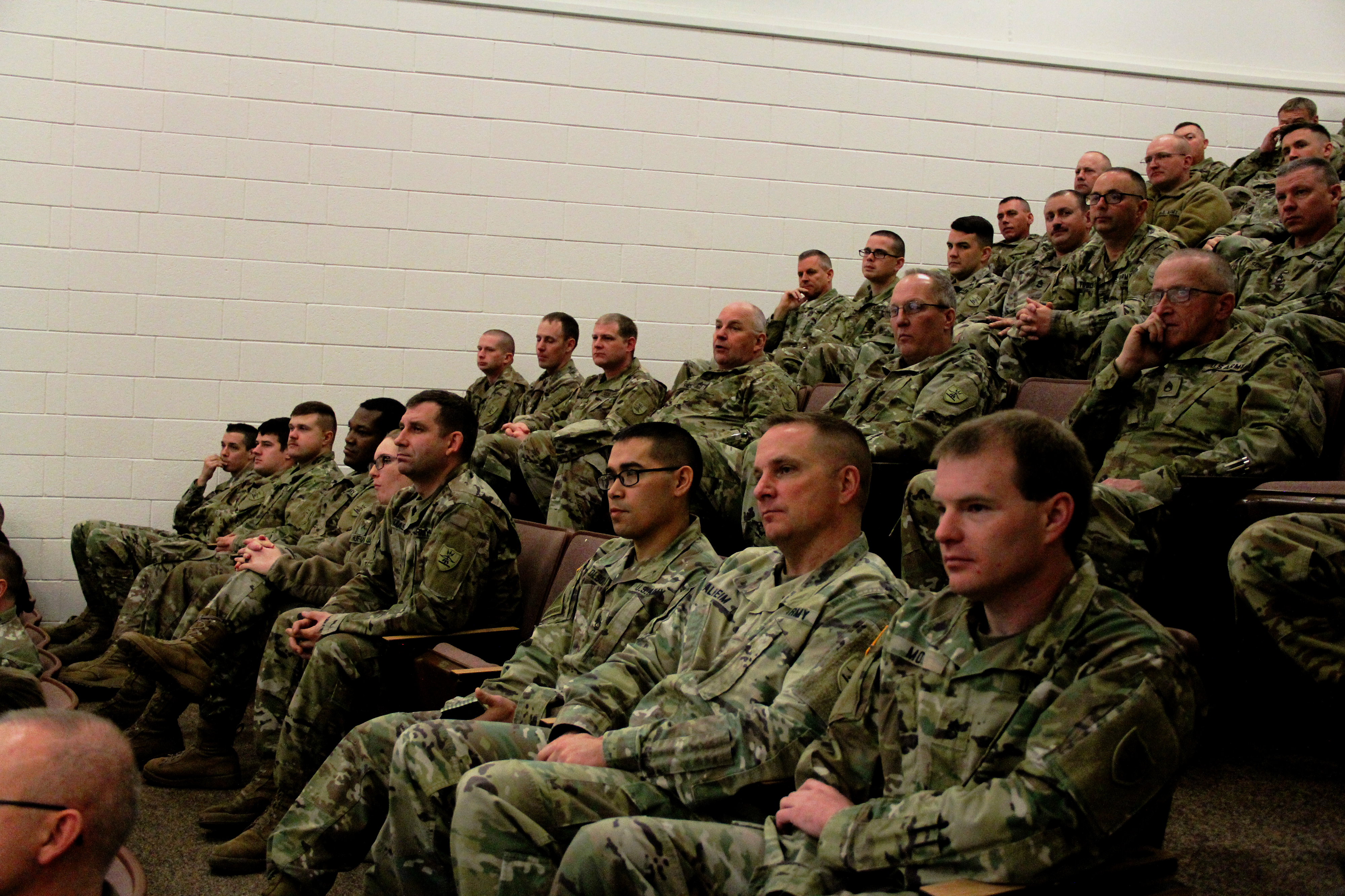 Soldiers listen to Maj. Gen. Al Dohrmann render remarks during a townhall on Dec. 4.