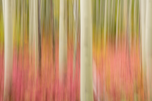 This is a slower shutter shoot. The shimmer from the golden Aspen leaves drew out the expressionist look in this photo. Abstract style in ICM photography has no rules, but we photographers sometimes get lucky to be "painters" using the camera sensors as our canvas. These unexpected outcomes are worth gold!