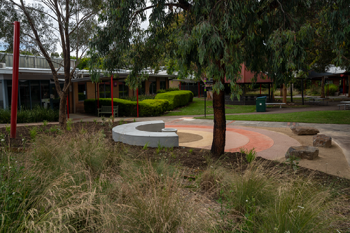 Swinburne's Indigenous Learning Circles acknowledge Country and Traditional Owners by integrating aspects of Country, people, culture and art to provide a unity across all campuses. The design provides place for people to gather, where knowledge can be exchanged and cultural engagement can occur.