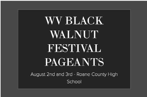 - 2026 WV Black Walnut Festival Pageant - The titleholder will be required to attend the 2026 WV Black Walnut Festival Pageants on August 1st to crown her successor.