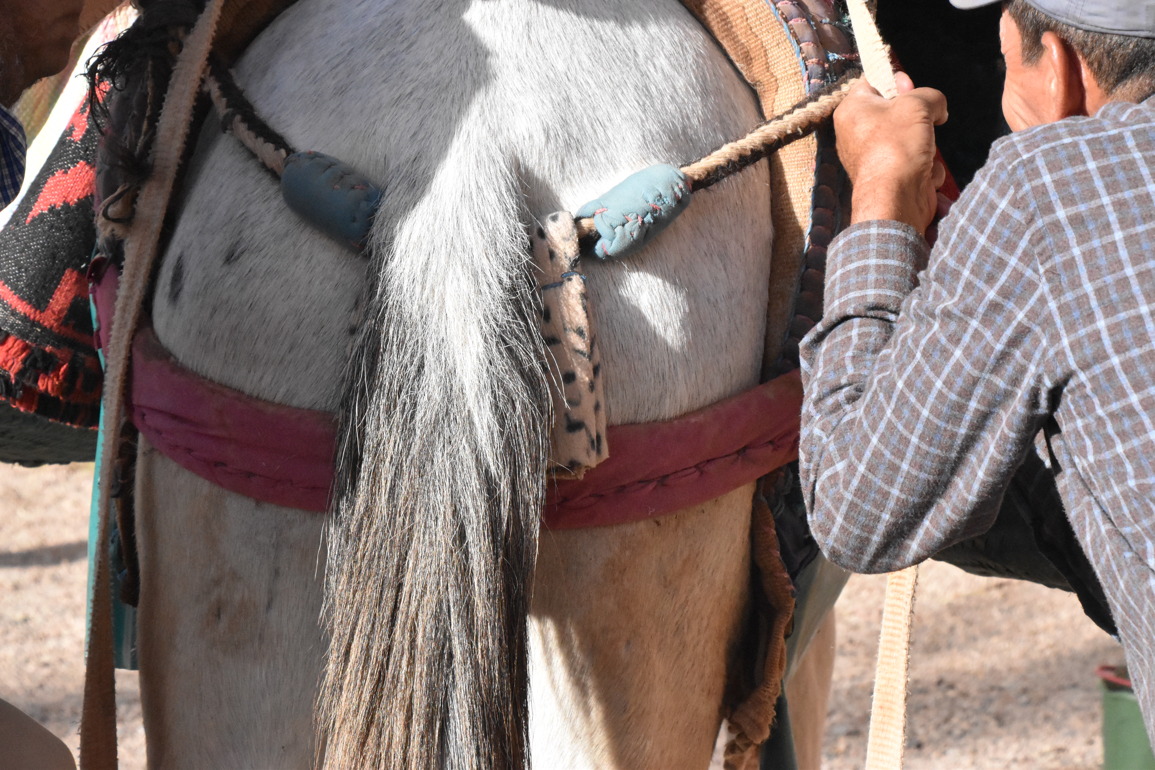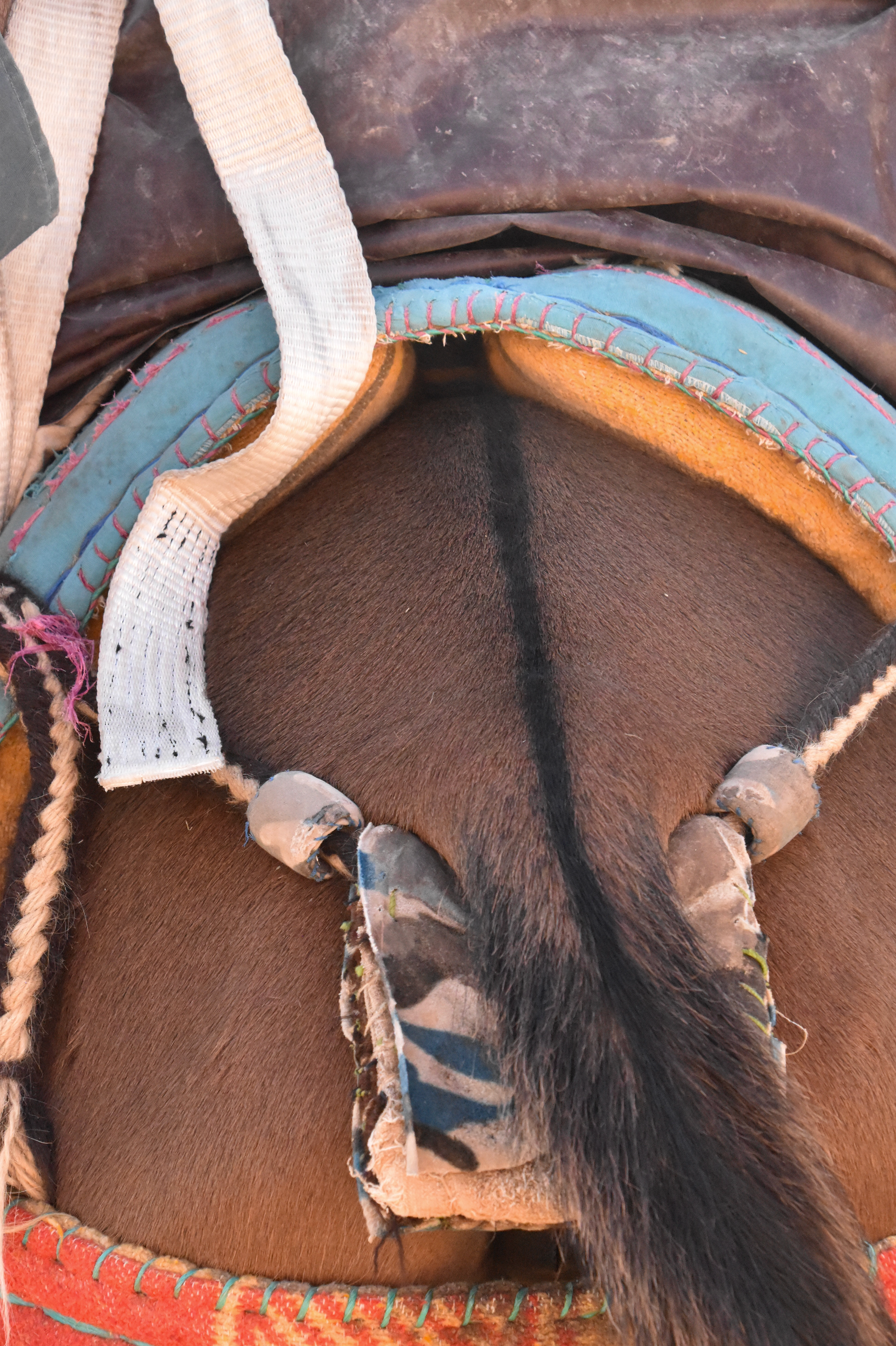 Deux tâches bien différentes, Ibrahim au milieu de ses casseroles et bassines et l’un de nos muletiers transformé en maréchal-ferrant.