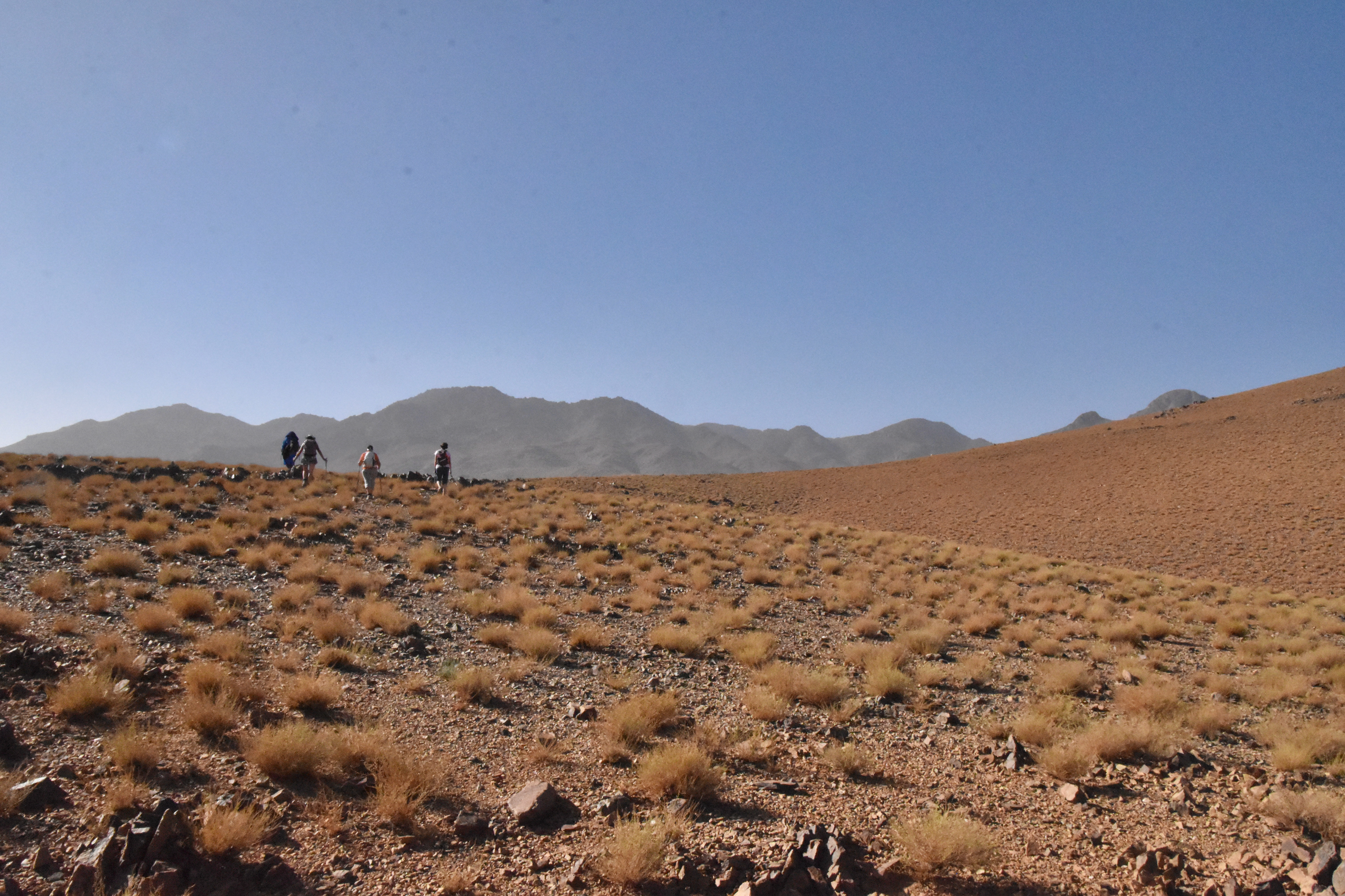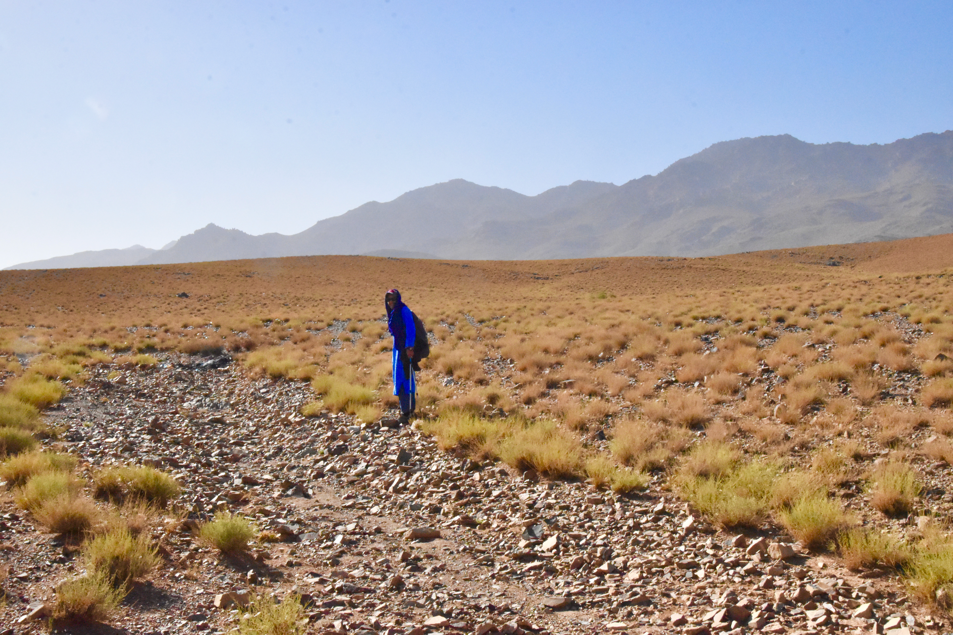 La marche d’approche vers les contreforts du Saghro, Sa’id, notre guide, toujours devant. Il faut dire que les gazelles batifolent… et ce n’est que le premier jour !