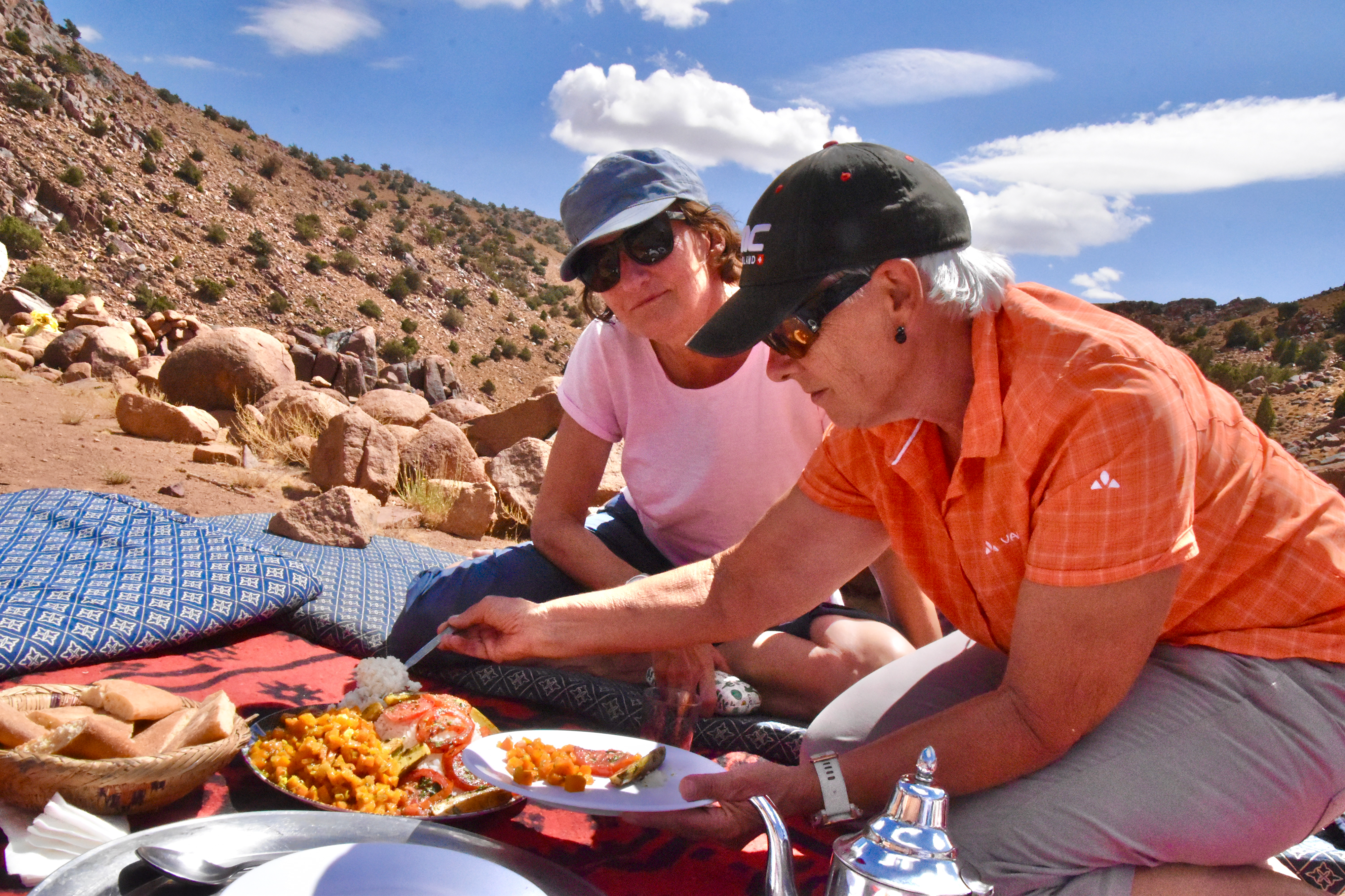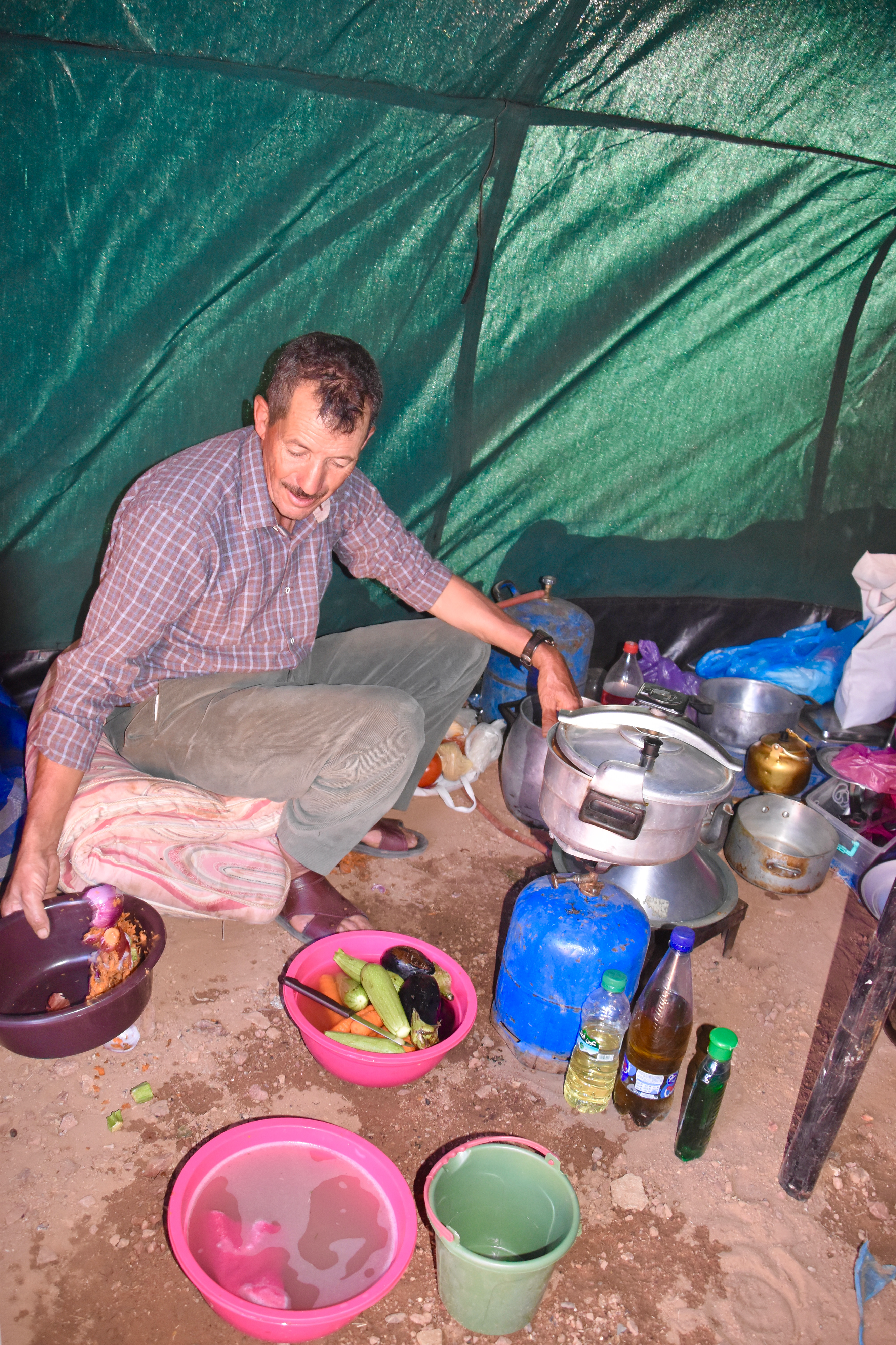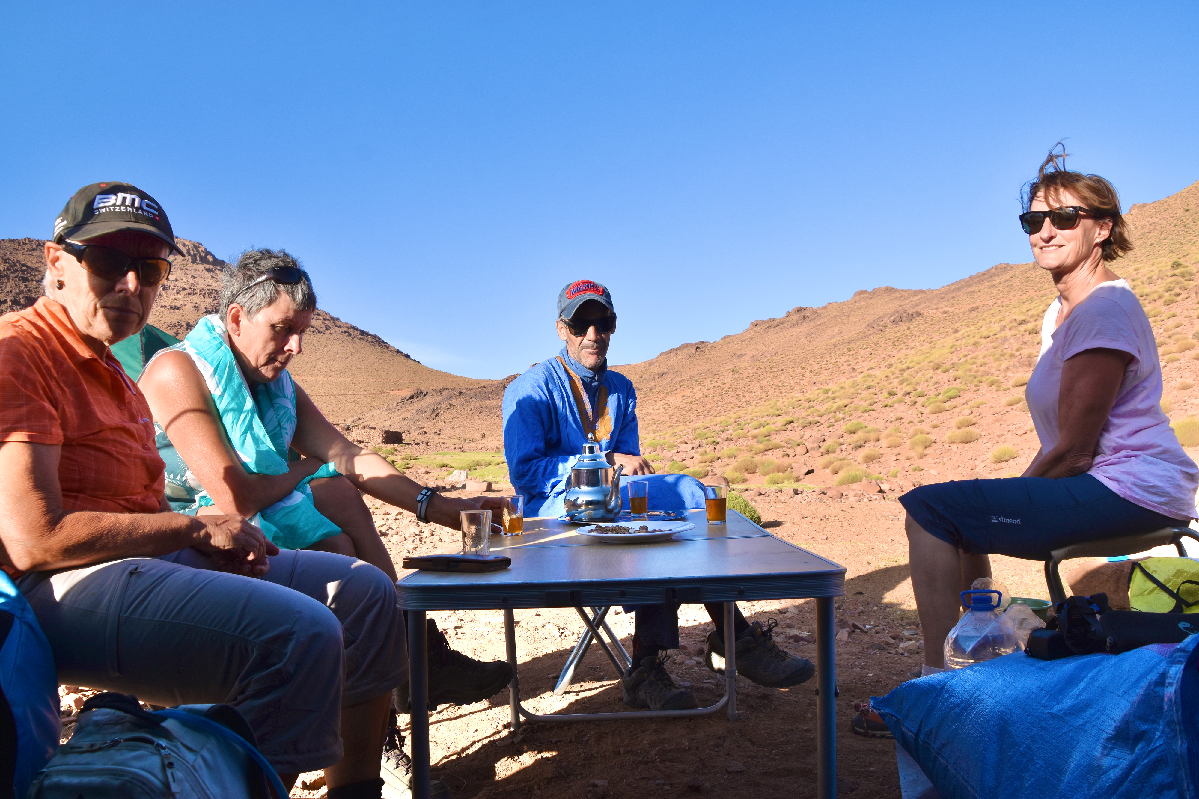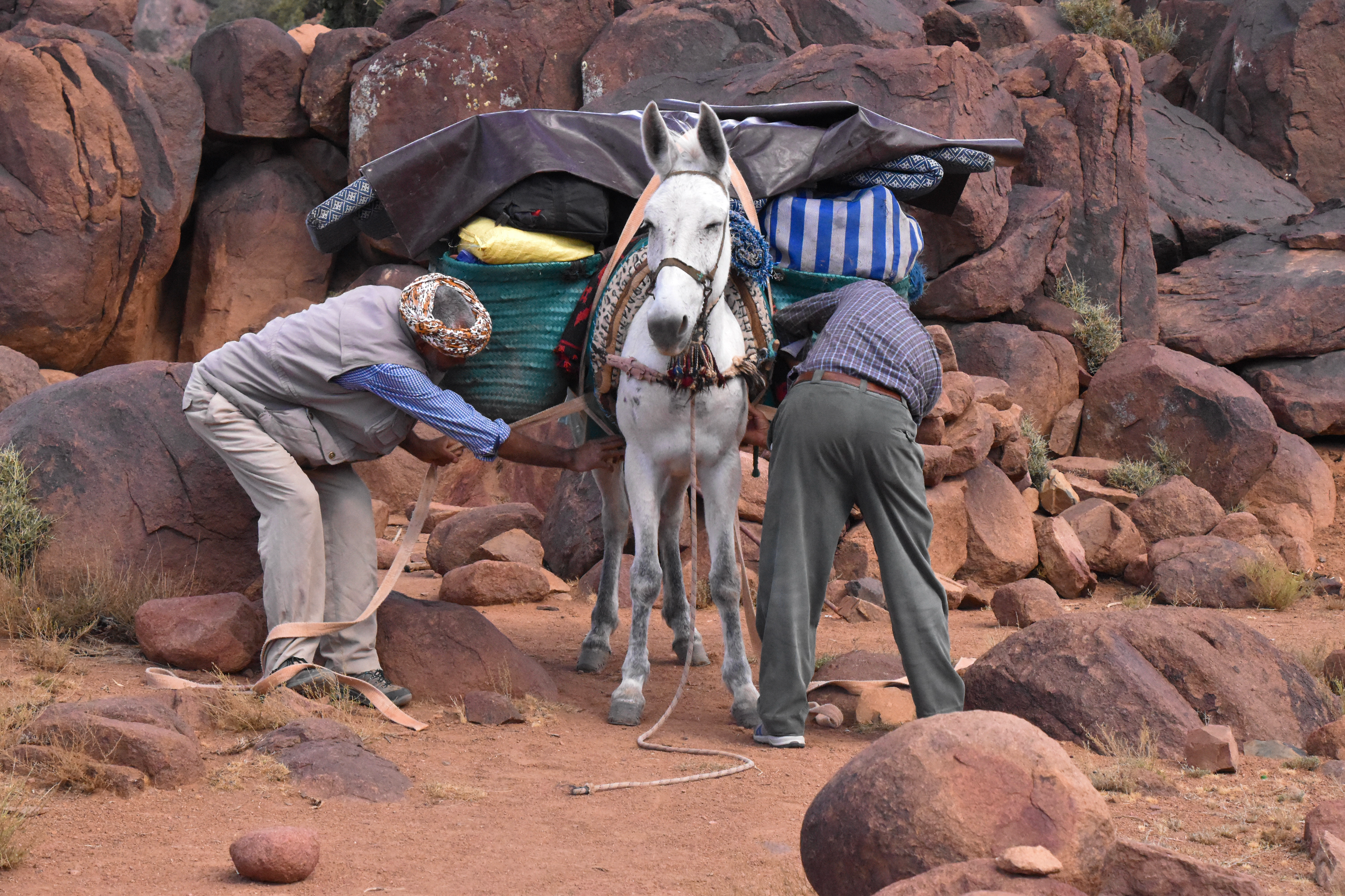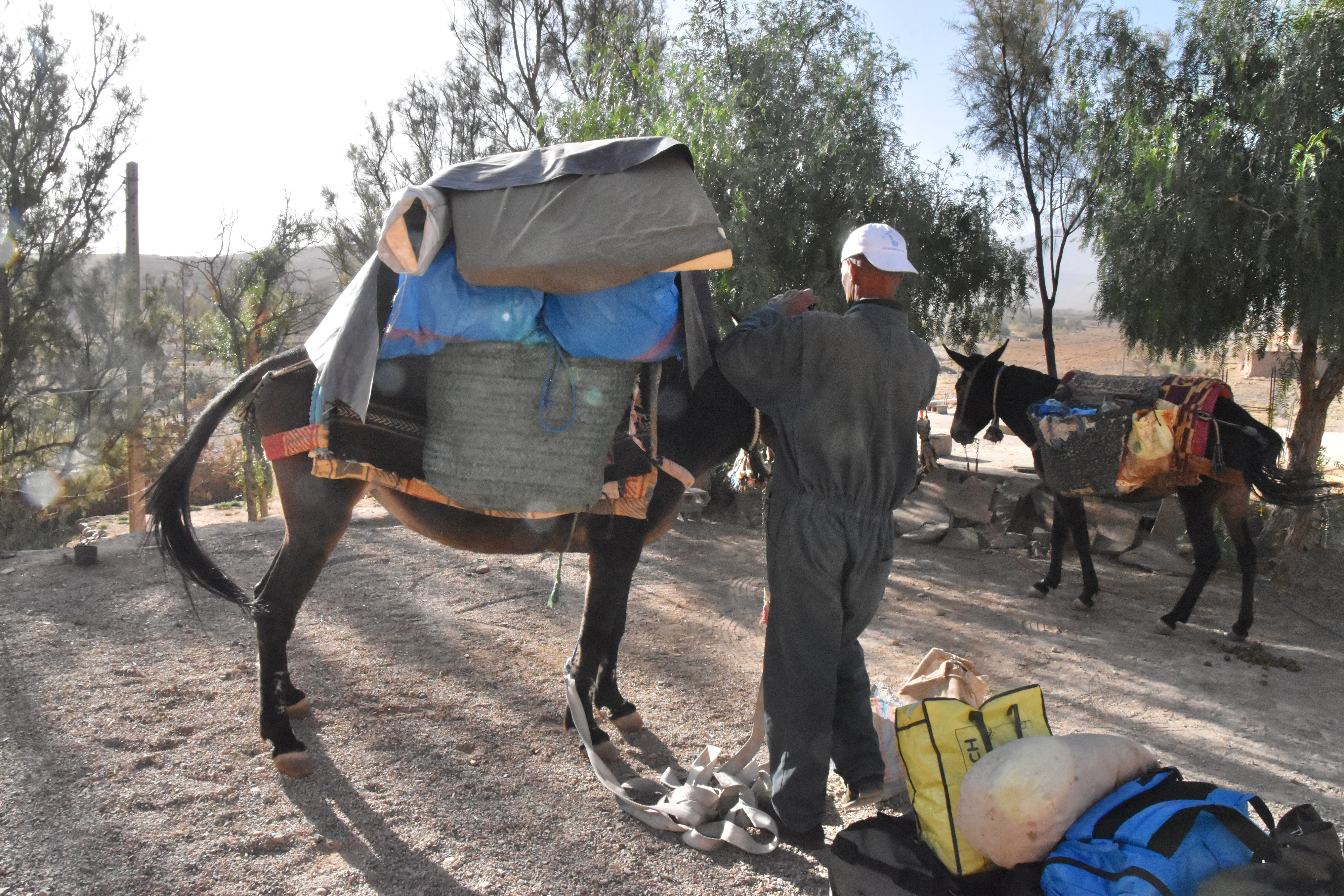 Un seul mulet pour transporter la cuisine et notre repas. Toujours encadré par Ali, le responsable des muletiers et Ibrahim, cuisinier hors pair. On dirait notre Sidi Oumlil plus en chair !